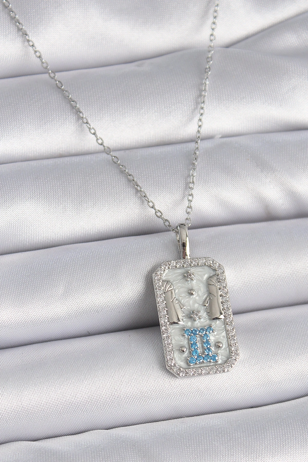 Erb 316L Çelik Gümüş Renk Zincir İkizler Burcu Zirkon Taşlı Kadın Kolye