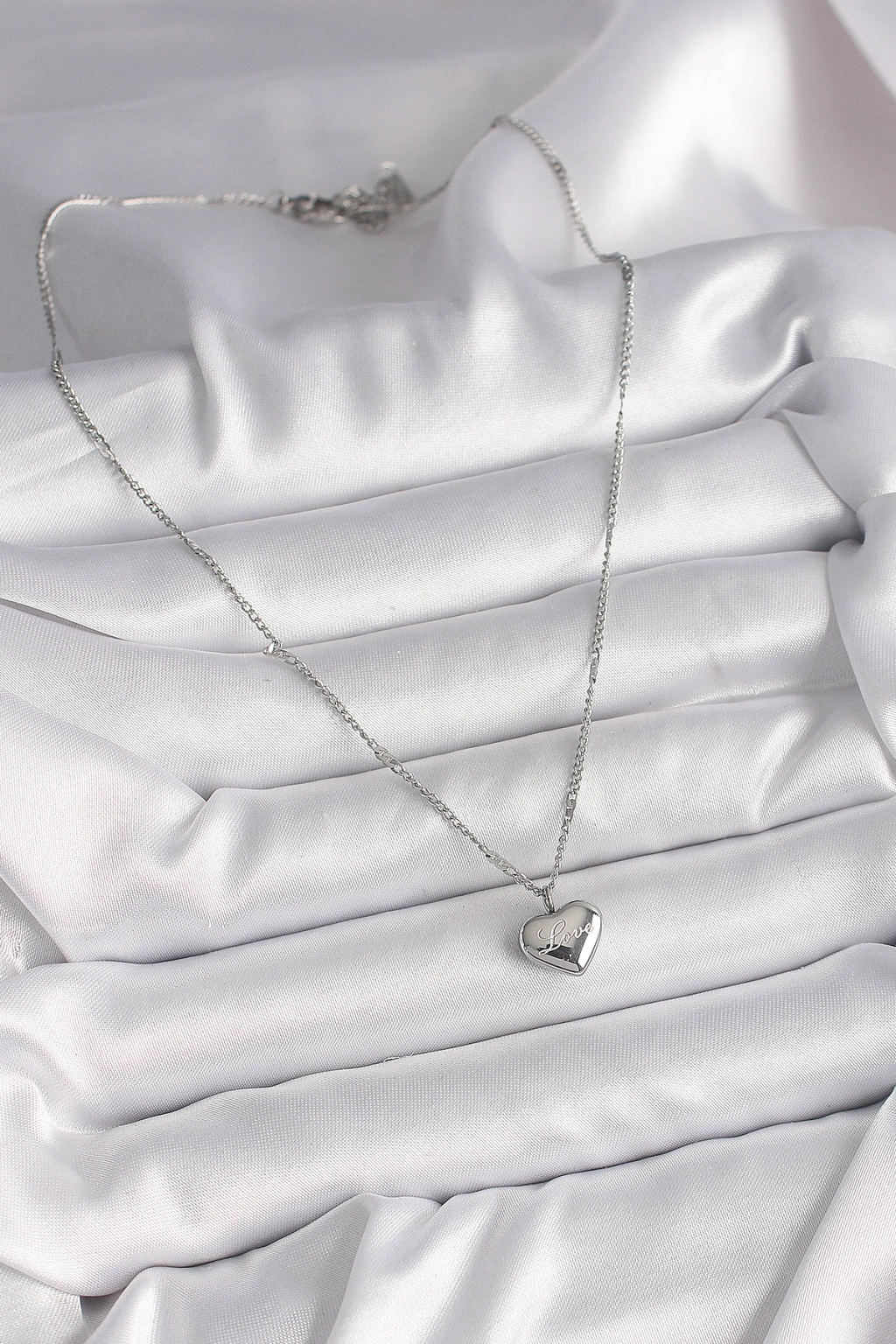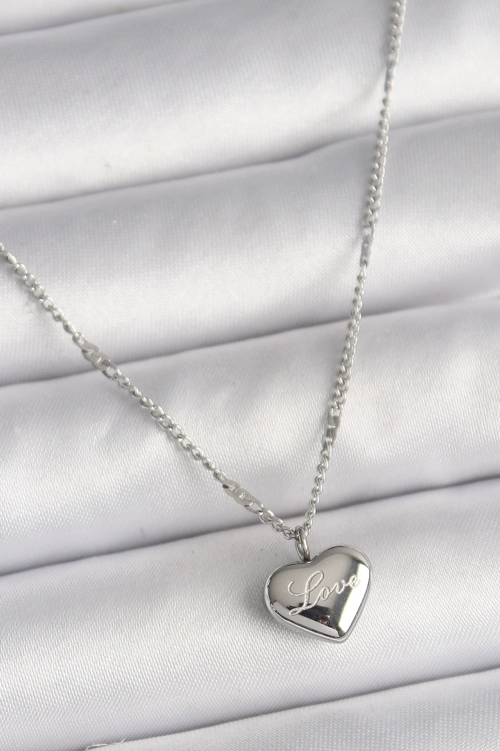 Erb 316L Çelik Gümüş Renk Zincir Love İşleme Kalp Figür Kadın Kolye
