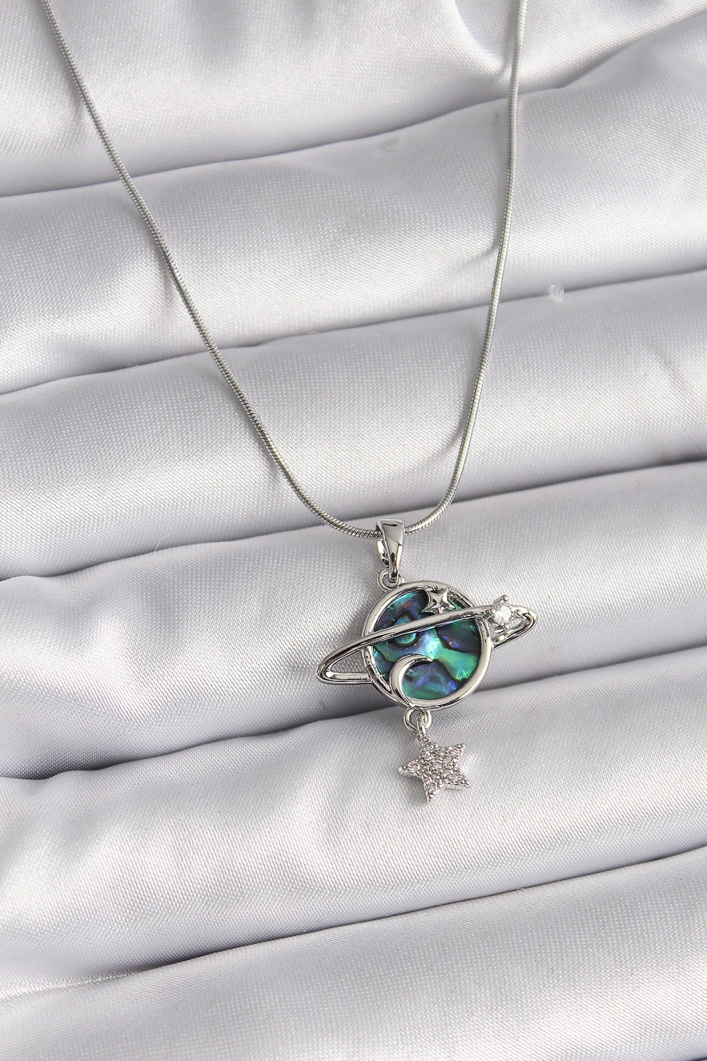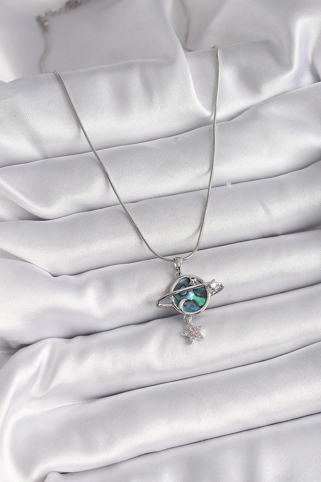 Erb 316L Çelik Gümüş Renk Zincir Zirkon Taşlı Gezegen Model Kadın Kolye