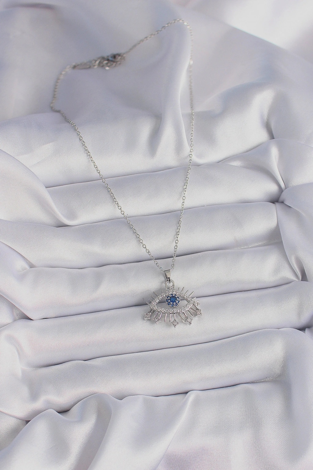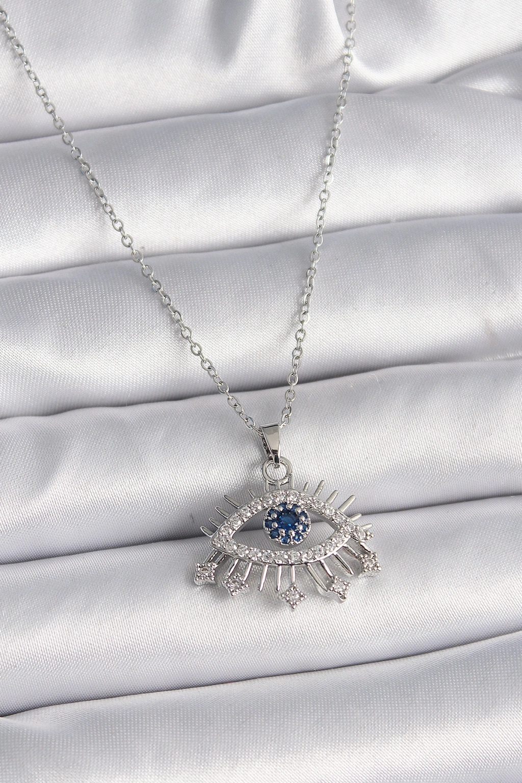 Erb 316L Çelik Gümüş Renk Zincir Zirkon Taşlı Göz Model Kadın Kolye