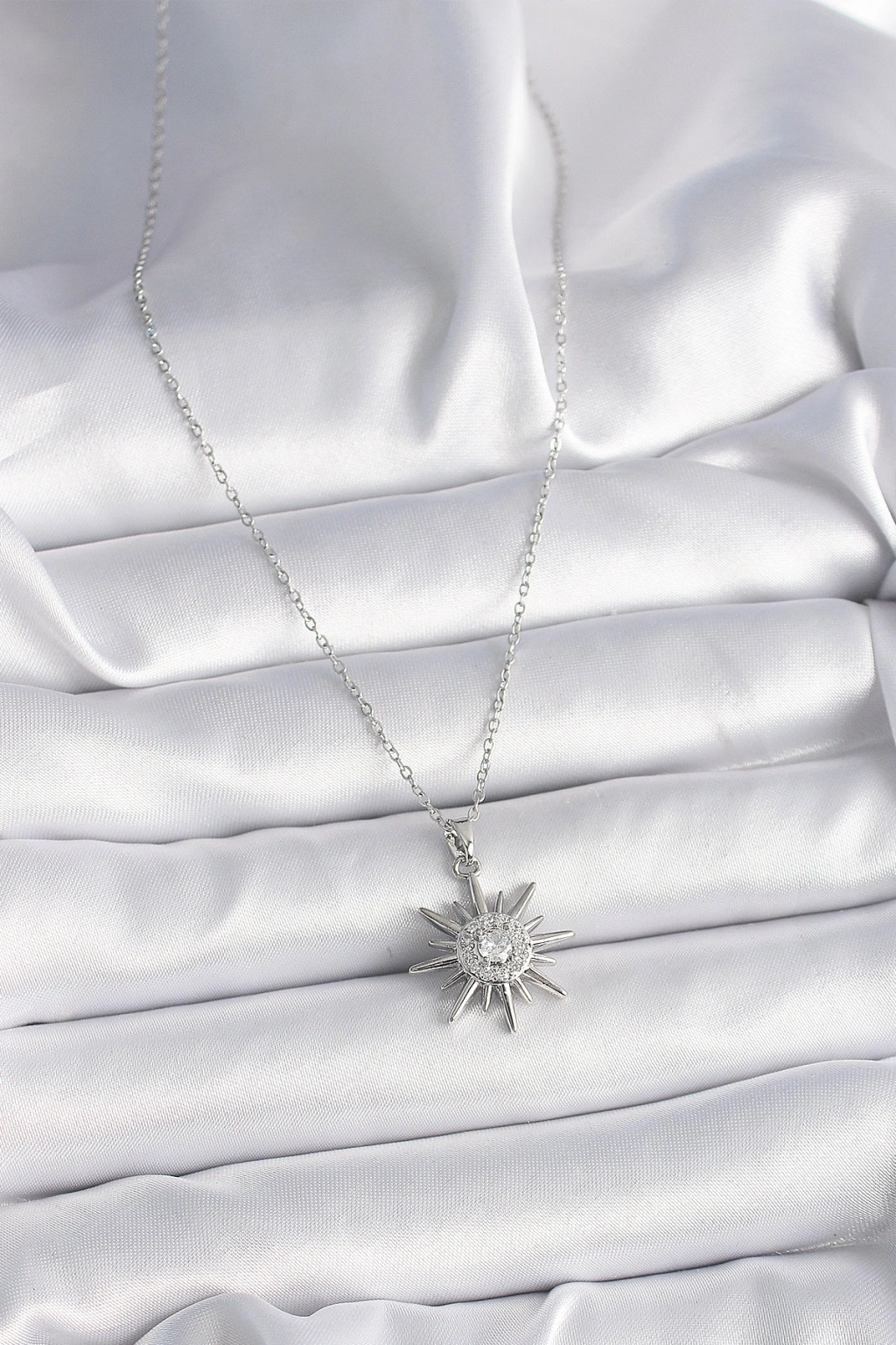 Erb 316L Çelik Gümüş Renk Zincir Zirkon Taşlı Güneş Model Kadın Yüzük