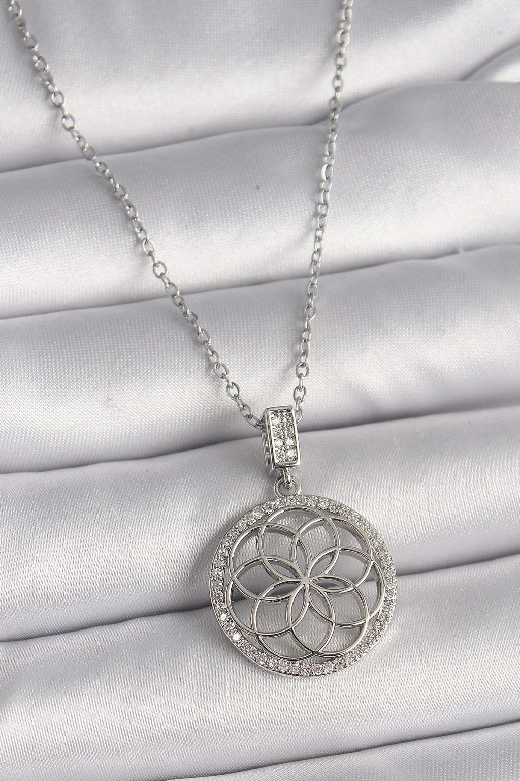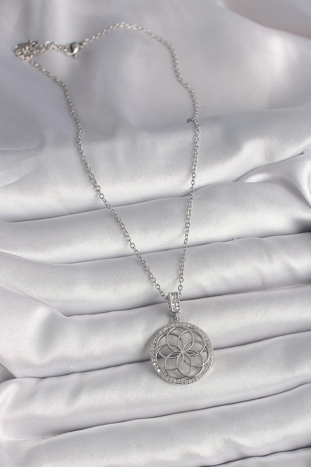 Erb 316L Çelik Gümüş Renk Zincir Zirkon Taşlı Lotus Model Kadın Kolye