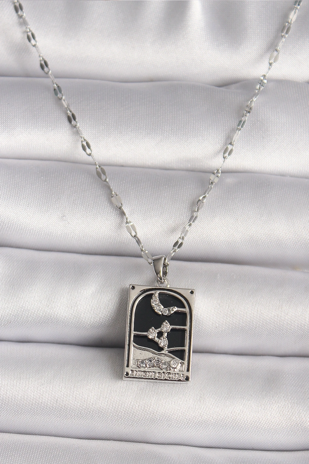 Erb 316L Çelik Gümüş Renk Zirkon Taşlı Ay Figürlü Taror Model Kadın Kolye