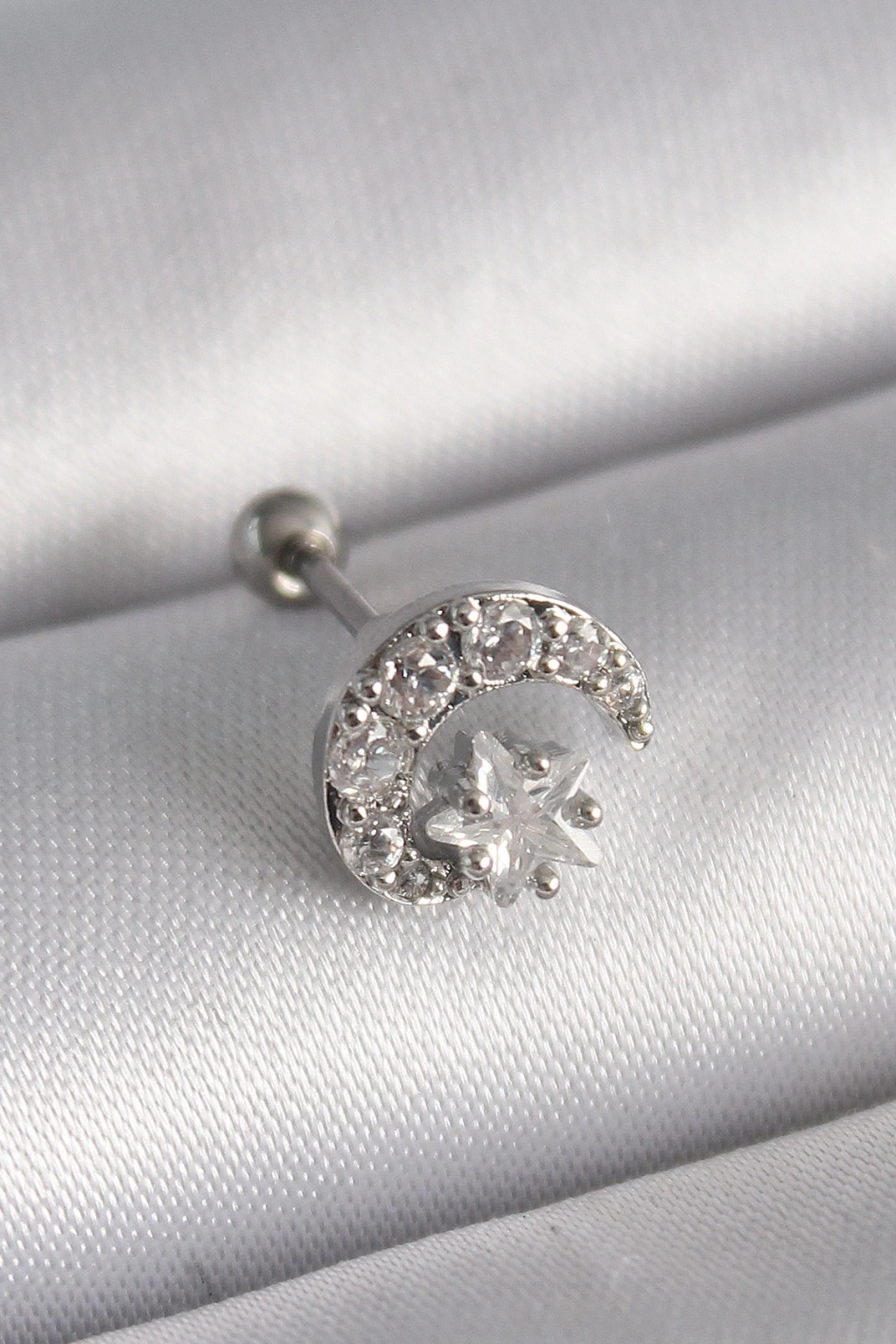 Erb 316L Çelik Gümüş Renk Zirkon Taşlı Ay Yıldız Tragus Piercing