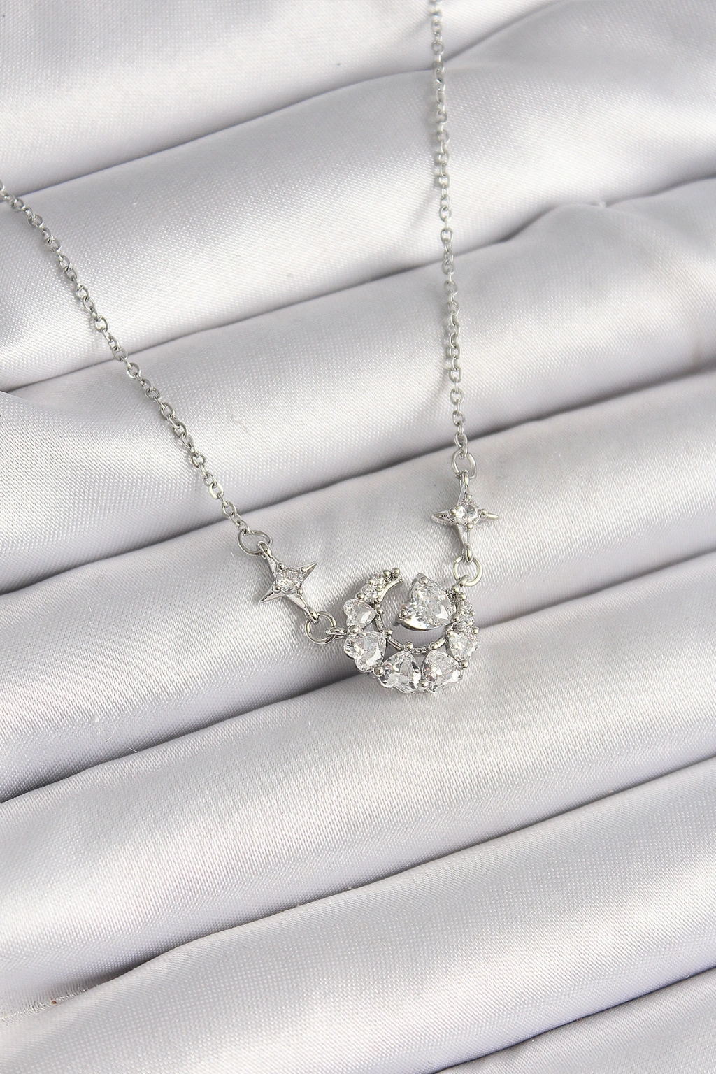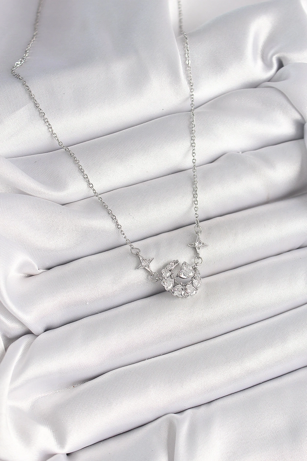 Erb 316L Çelik Gümüş Renk Zirkon Taşlı Hilal Kalp Model Kadın Kolye