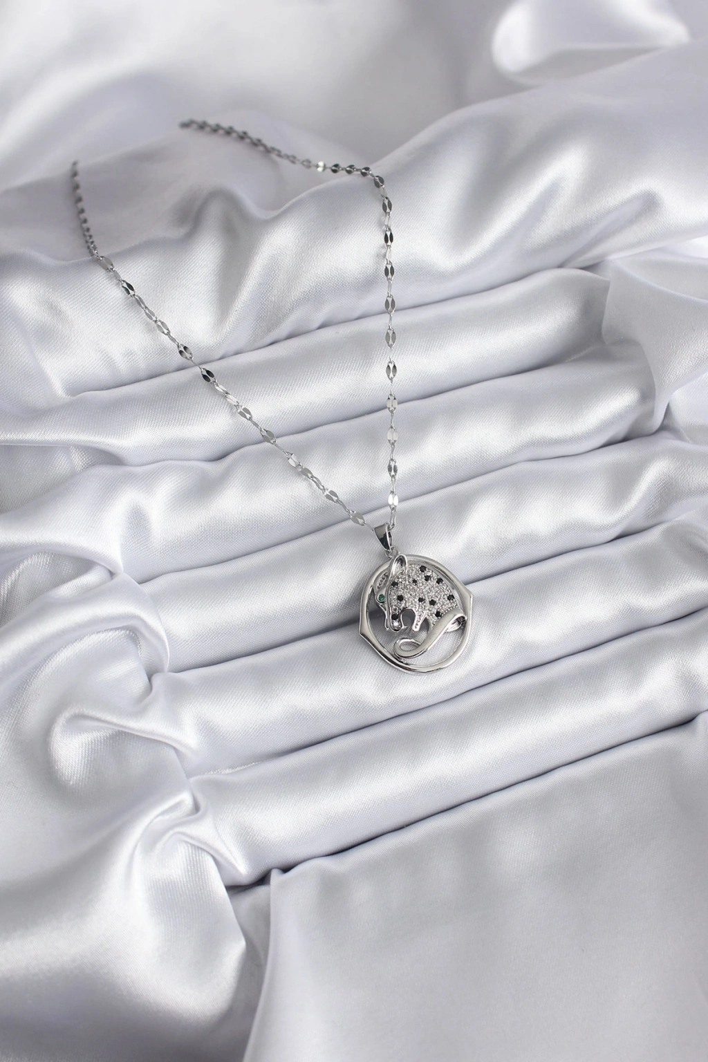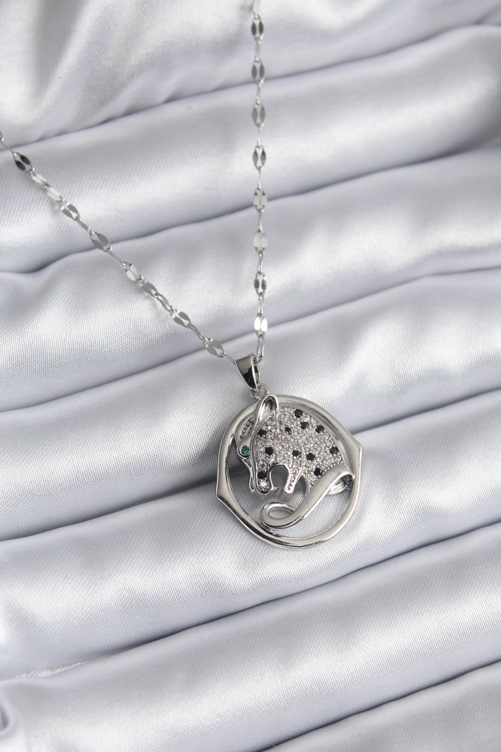 Erb 316L Çelik Gümüş Renk Zirkon Taşlı Jaguar Model Kadın Kolye