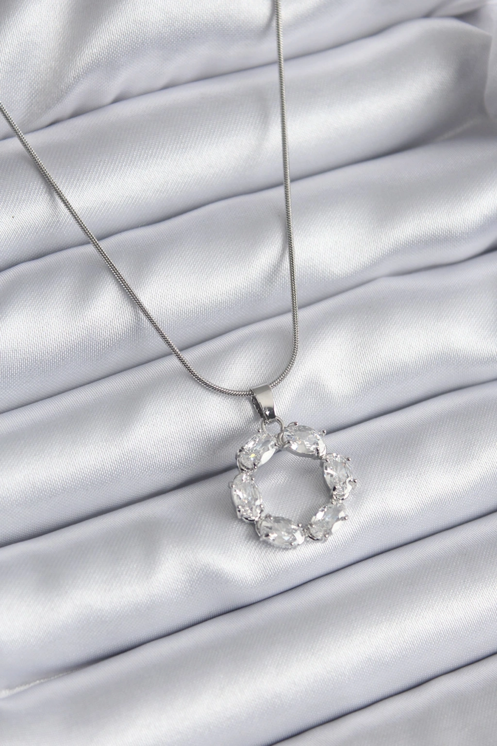 Erb 316L Çelik Gümüş Renk Zirkon Taşlı Kadın Kolye