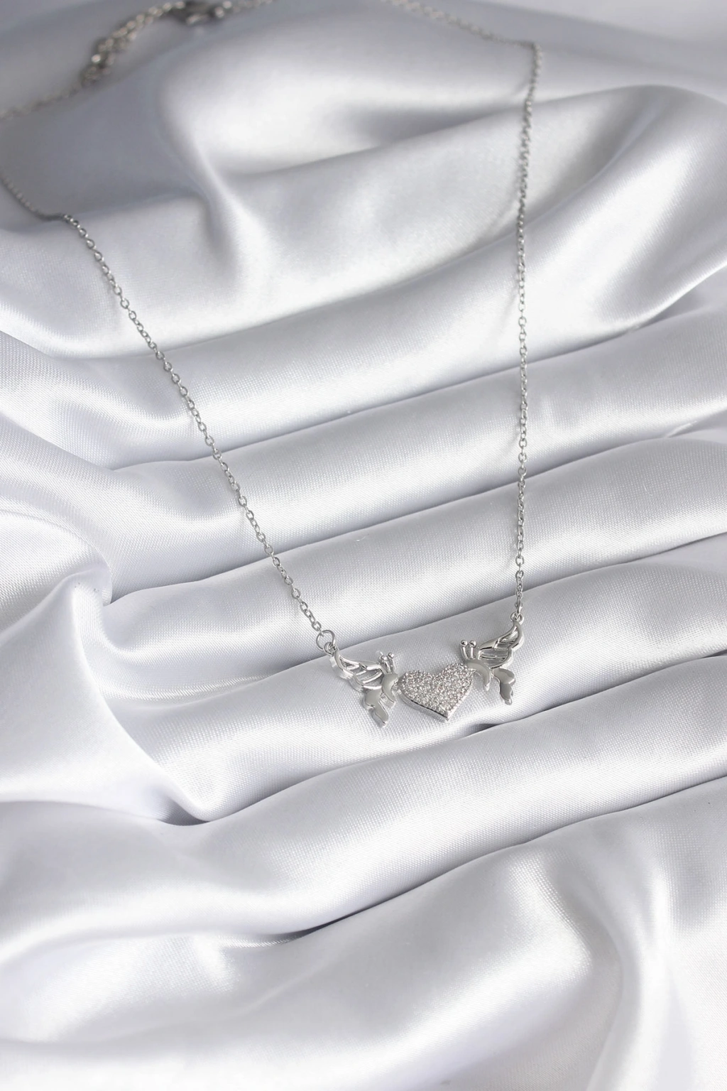 Erb 316L Çelik Gümüş Renk Zirkon Taşlı Kanat Kalp Model Kadın Kolye