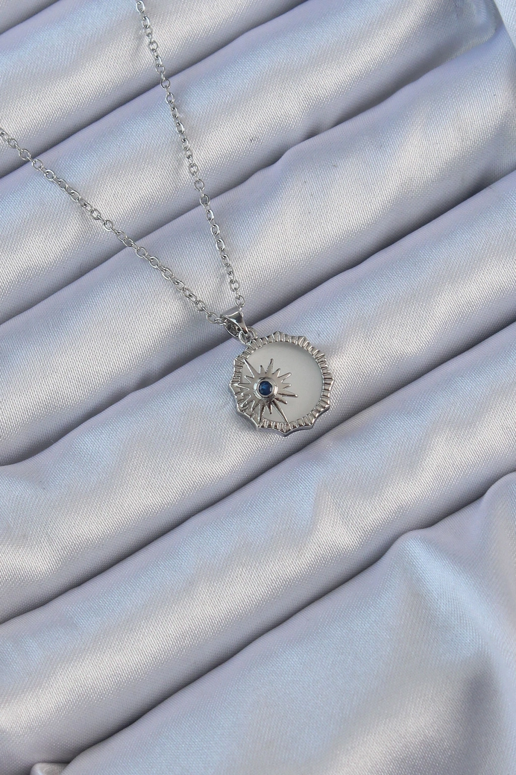 Erb 316L Çelik Gümüş Renk Zirkon Taşlı Mineli Kutup Yıldızı Kolye