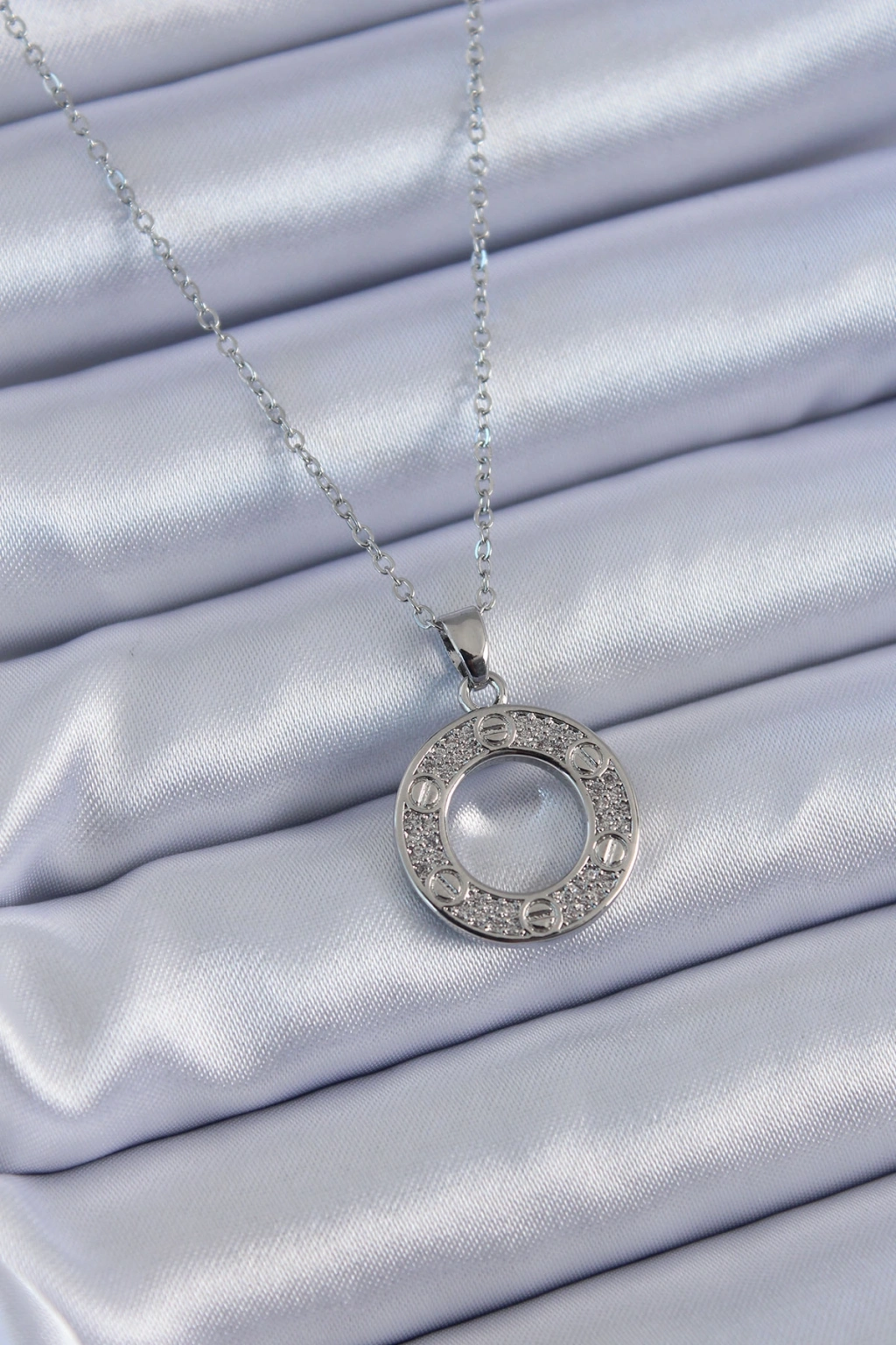 Erb 316L Çelik Gümüş Renk Zirkon Taşlı Model Kadın Kolye