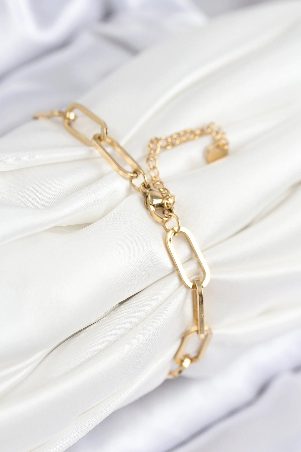 Erb Gold Renk Zincir Model Zirkon Taşlı Pirinç Asansörlü Kadın Bileklik