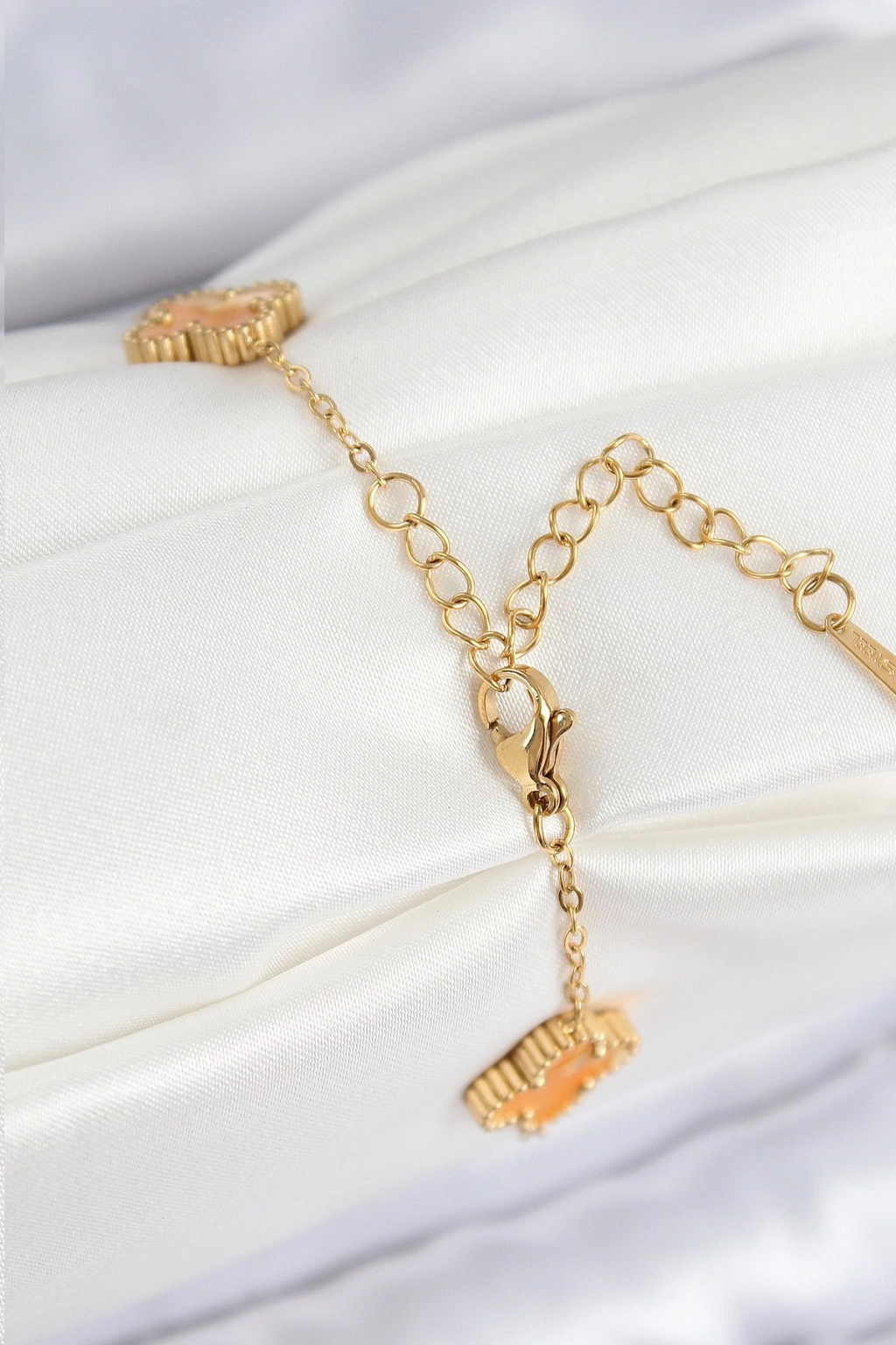 Erb 316L Çelik Sedefli Turuncu Gold Renk Yonca Kadın Bileklik