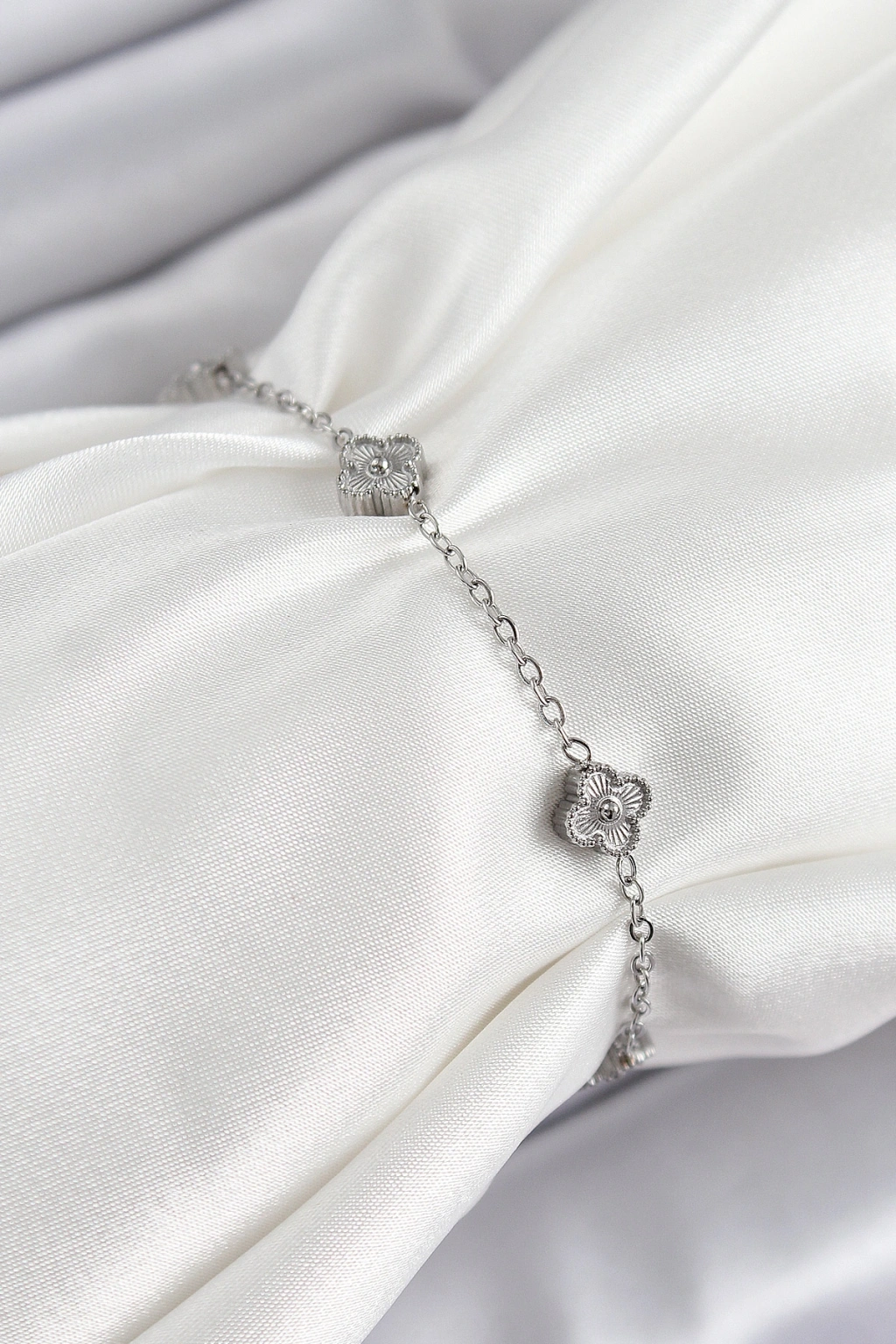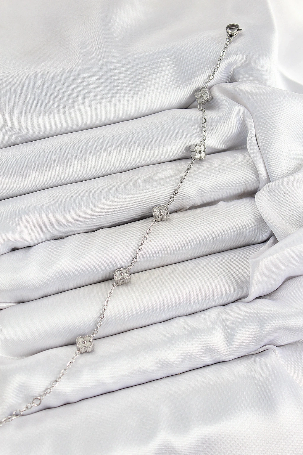 Erb 316L Çelik Yonca Model Gümüş Renk Kadın Bileklik