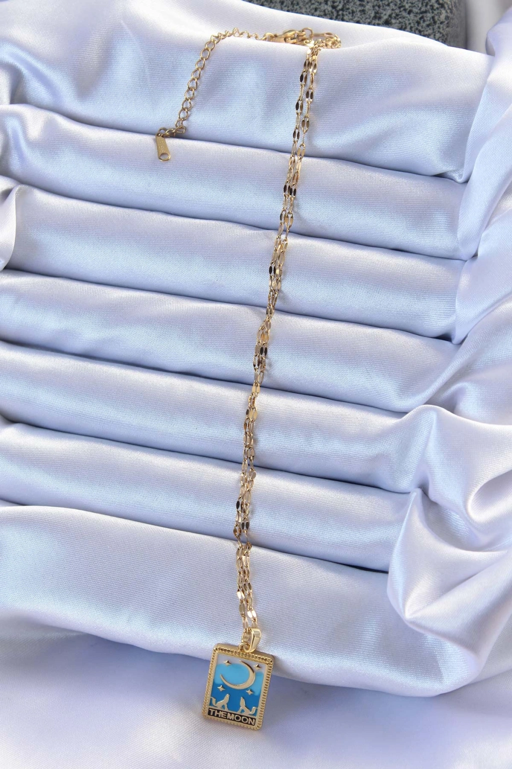Erb 316L Çelik Zincir Altın Renk Mavi Mineli Ay Figür Tarot Kolye