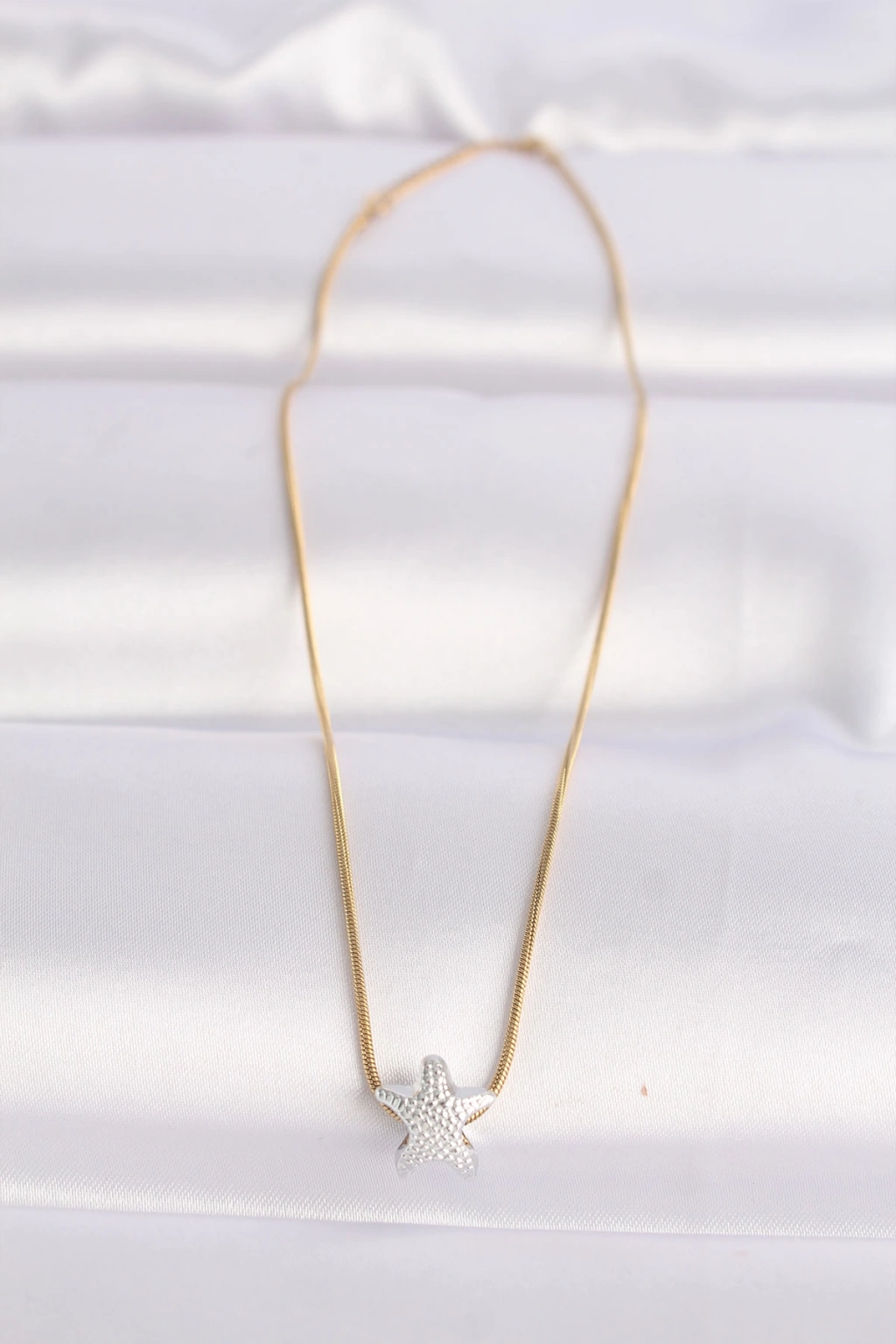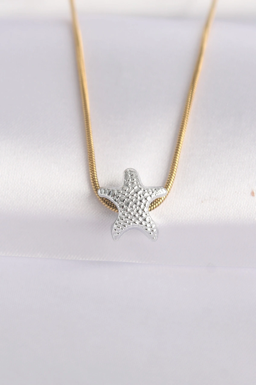 Erb 316L Çelik Zincir Altın Renk Zincirli Gümüş Renk Deniz Yıldızı Tasarımlı Kolye