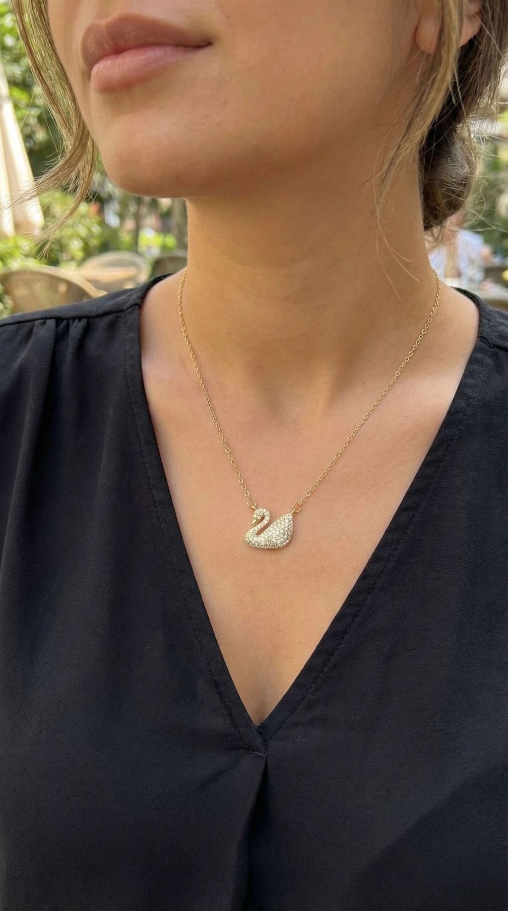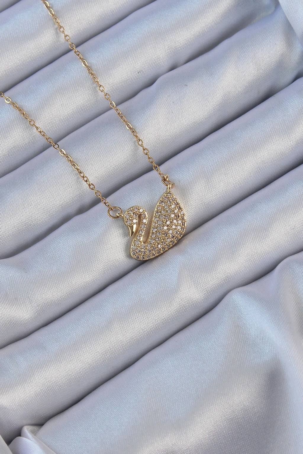 Erb 316L Çelik Zincir Altın Renk Zirkon Taşlı Kuğu Kolye