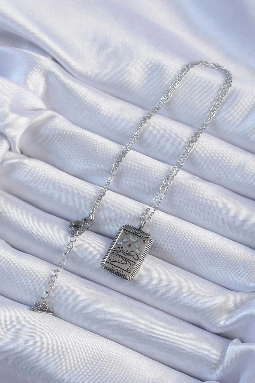 Erb 316L Çelik Zincir Eskitme Gümüş Renk Ay Figürlü Tarot Kolye