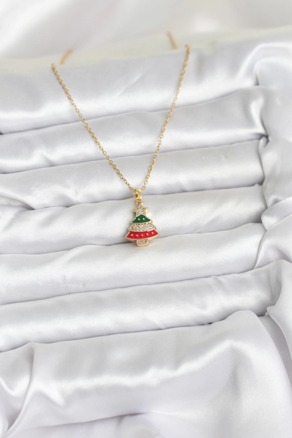 Erb 316L Çelik Zincir Gold Ren Çam Ağacı Model Zirkon Taşlı Yılbaşı Temalı Kadın Kolye