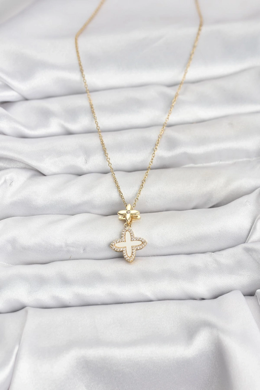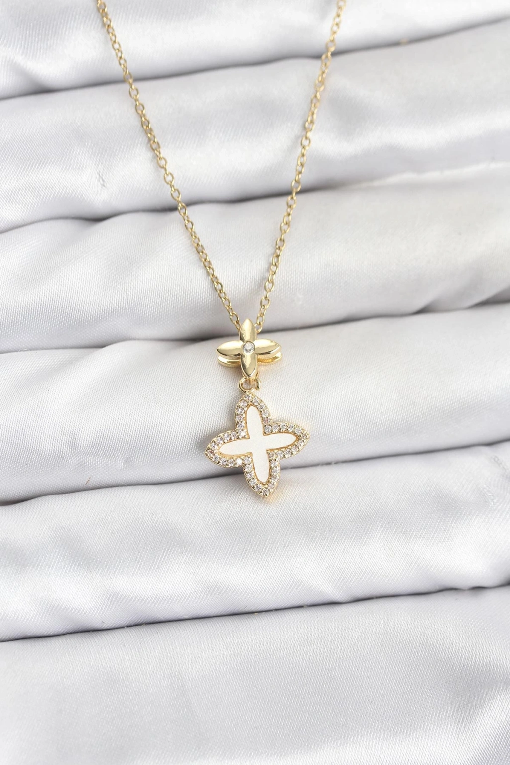 Erb 316L Çelik Zincir Gold Renk 4 Yapraklı Yonca Model Zirkon Taşlı Kadın Kolye