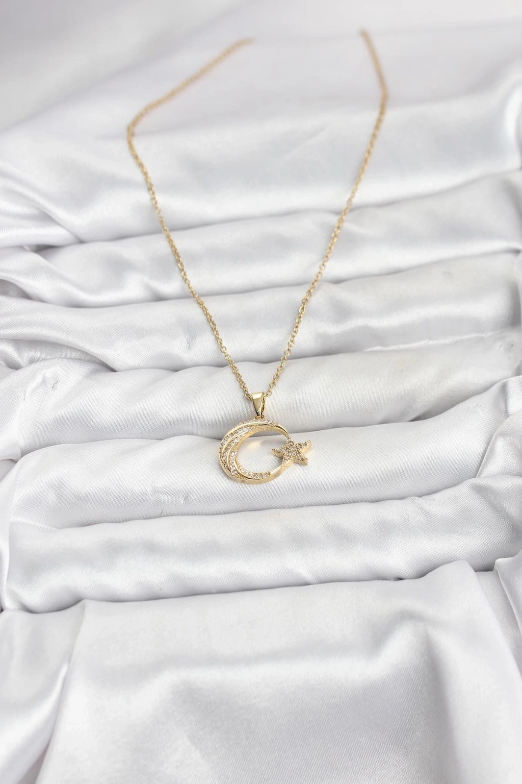 Erb 316L Çelik Zincir Gold Renk Ay Yıldız Model Zirkon Taşlı Kadın Kolye