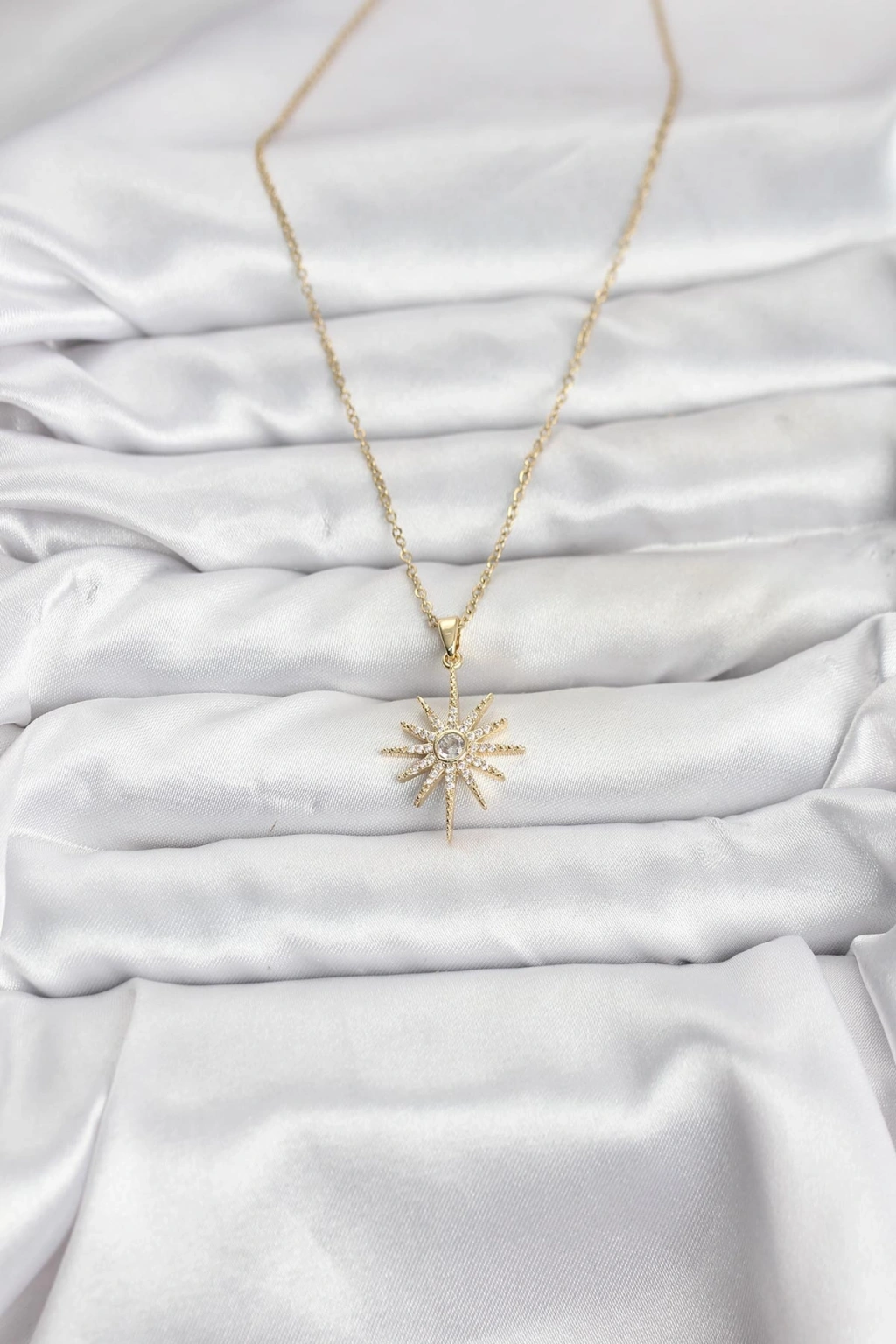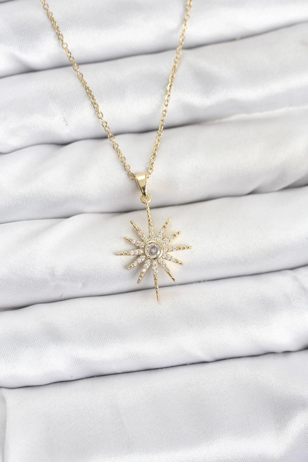 Erb 316L Çelik Zincir Gold Renk Kutup Yıldızı Model Zirkon Taşlı Kadın Kolye