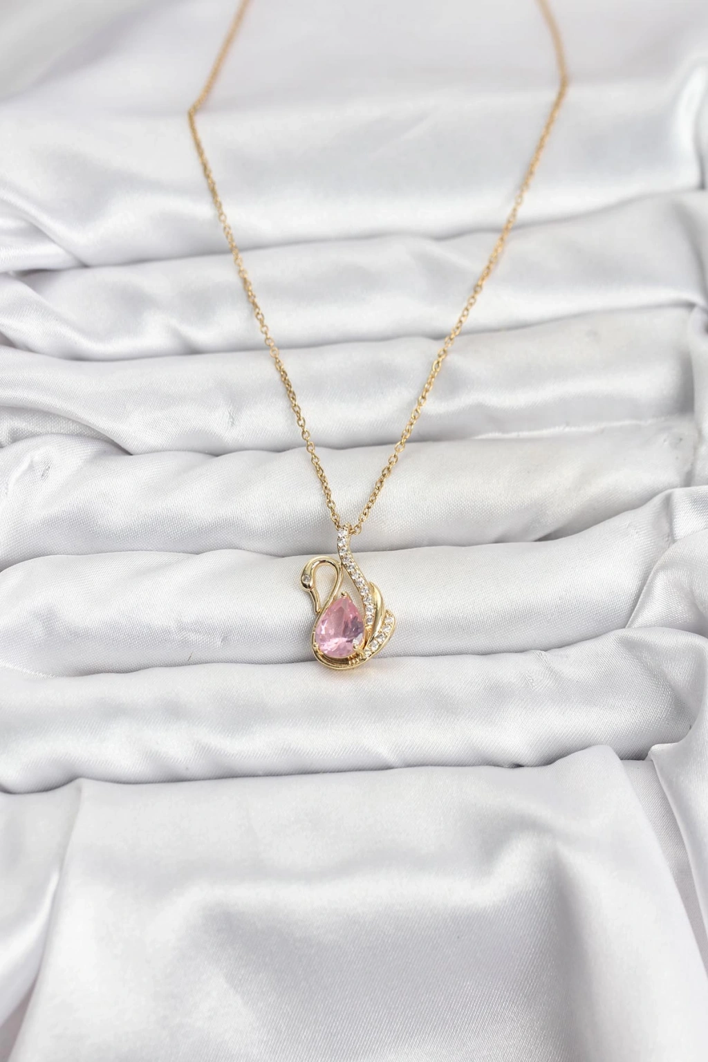 Erb 316L Çelik Zincir Gold Renk Pembe Kuğu Model Zirkon Taşlı Kadın Kolye