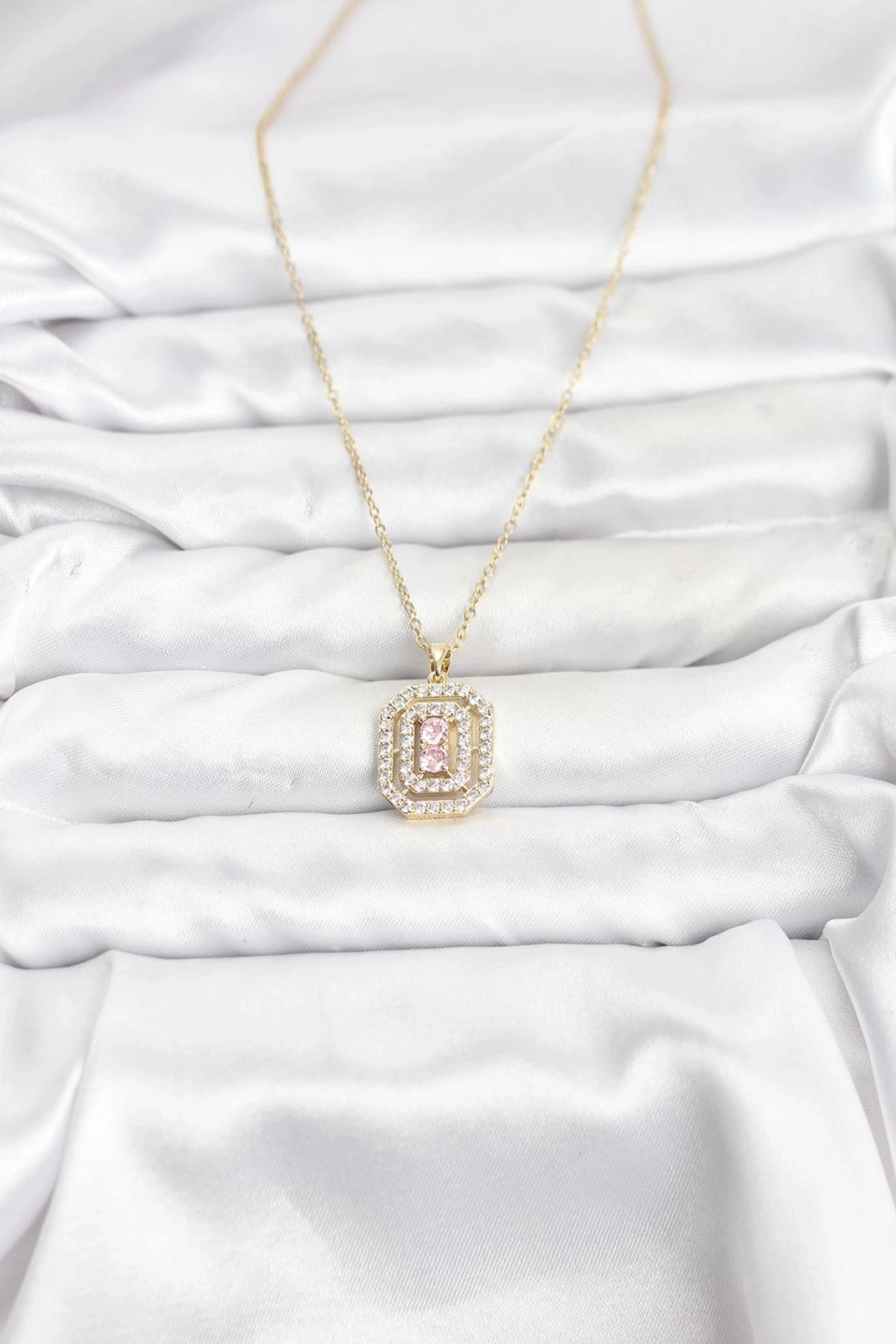 Erb 316L Çelik Zincir Gold Renk Plaka Model Zirkon Taşlı Kadın Kolye