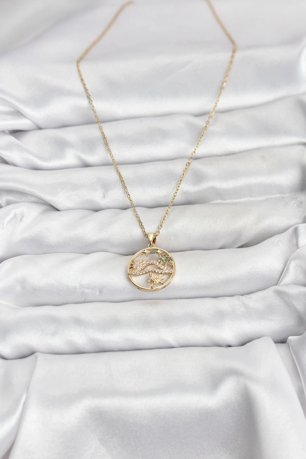 Erb 316L Çelik Zincir Gold Renk Şans Kolyesi Model Zirkon Taşlı Kadın Kolye