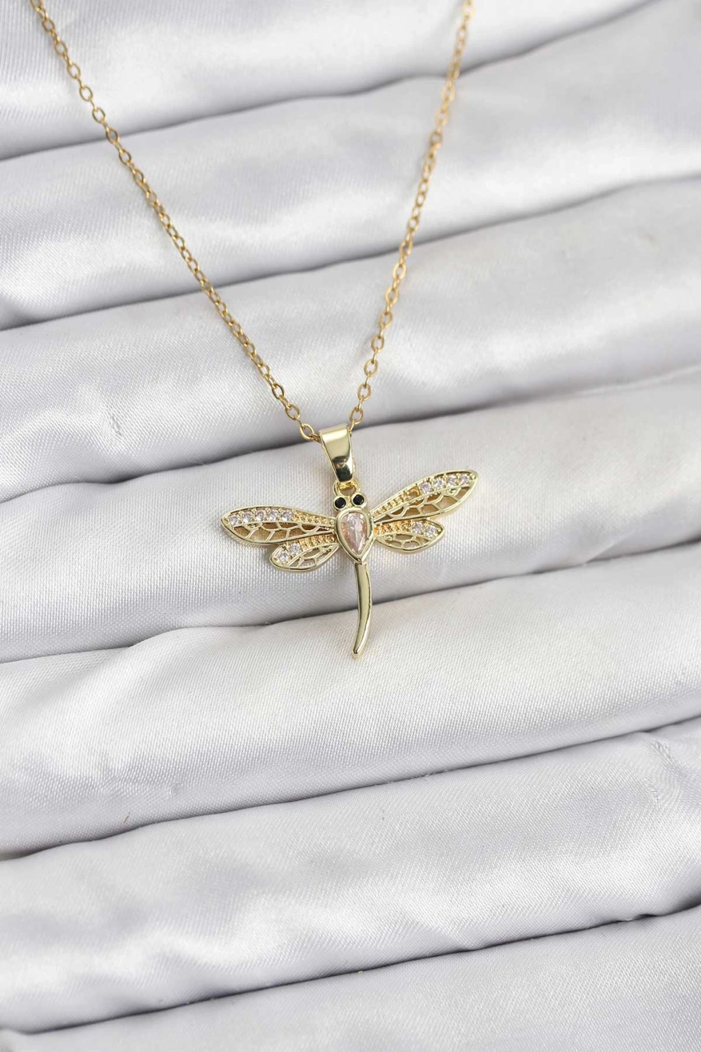 Erb 316L Çelik Zincir Gold Renk Yusufçuk Model Kadın Kolye