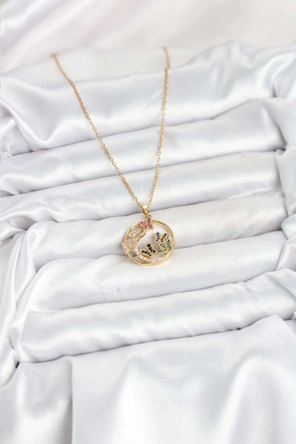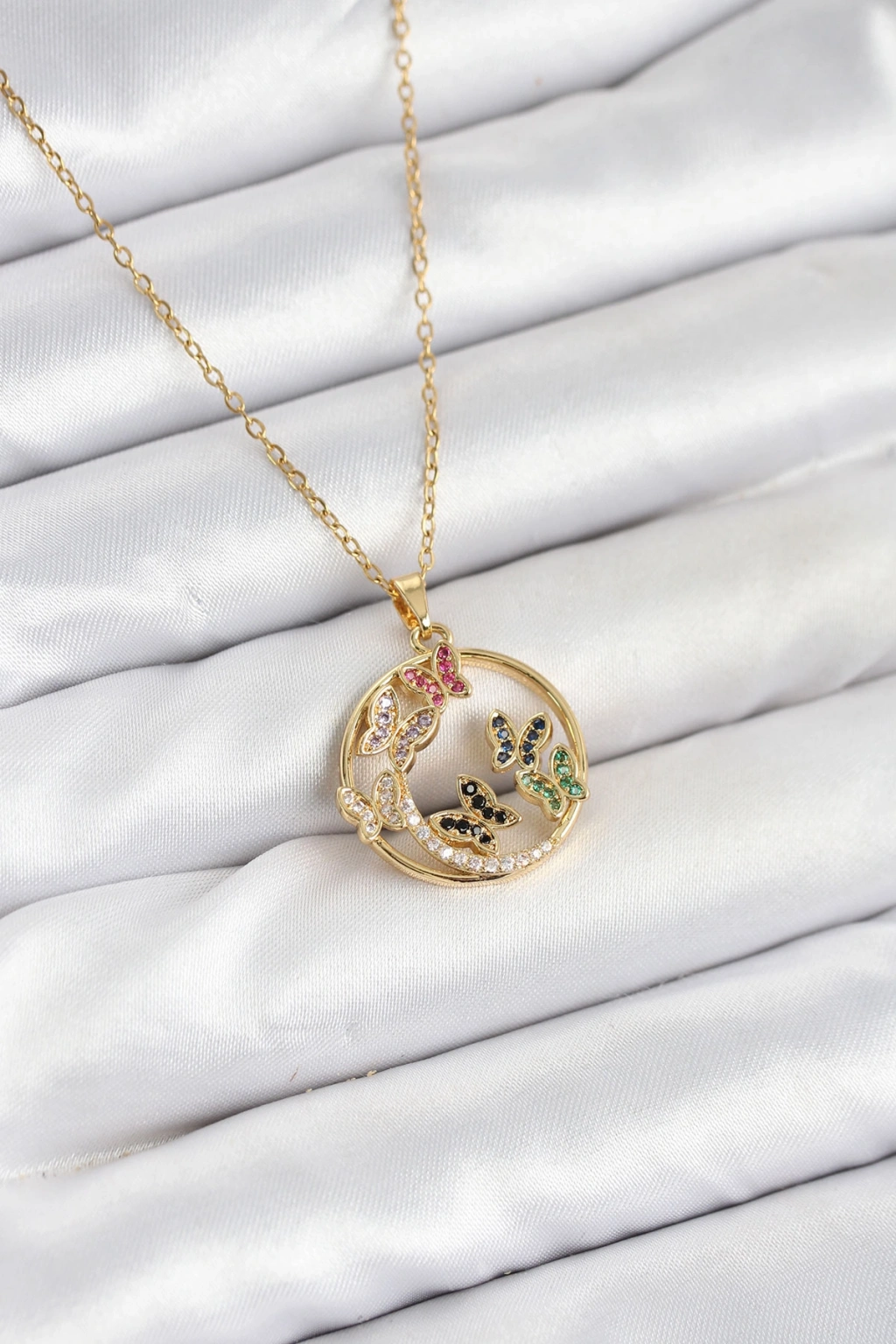 Erb 316L Çelik Zincir Gold Renk Zirkon Taşlı Kelebekli Kadın Kolye