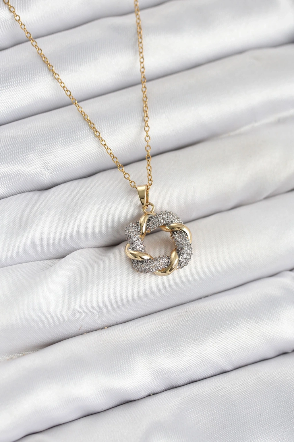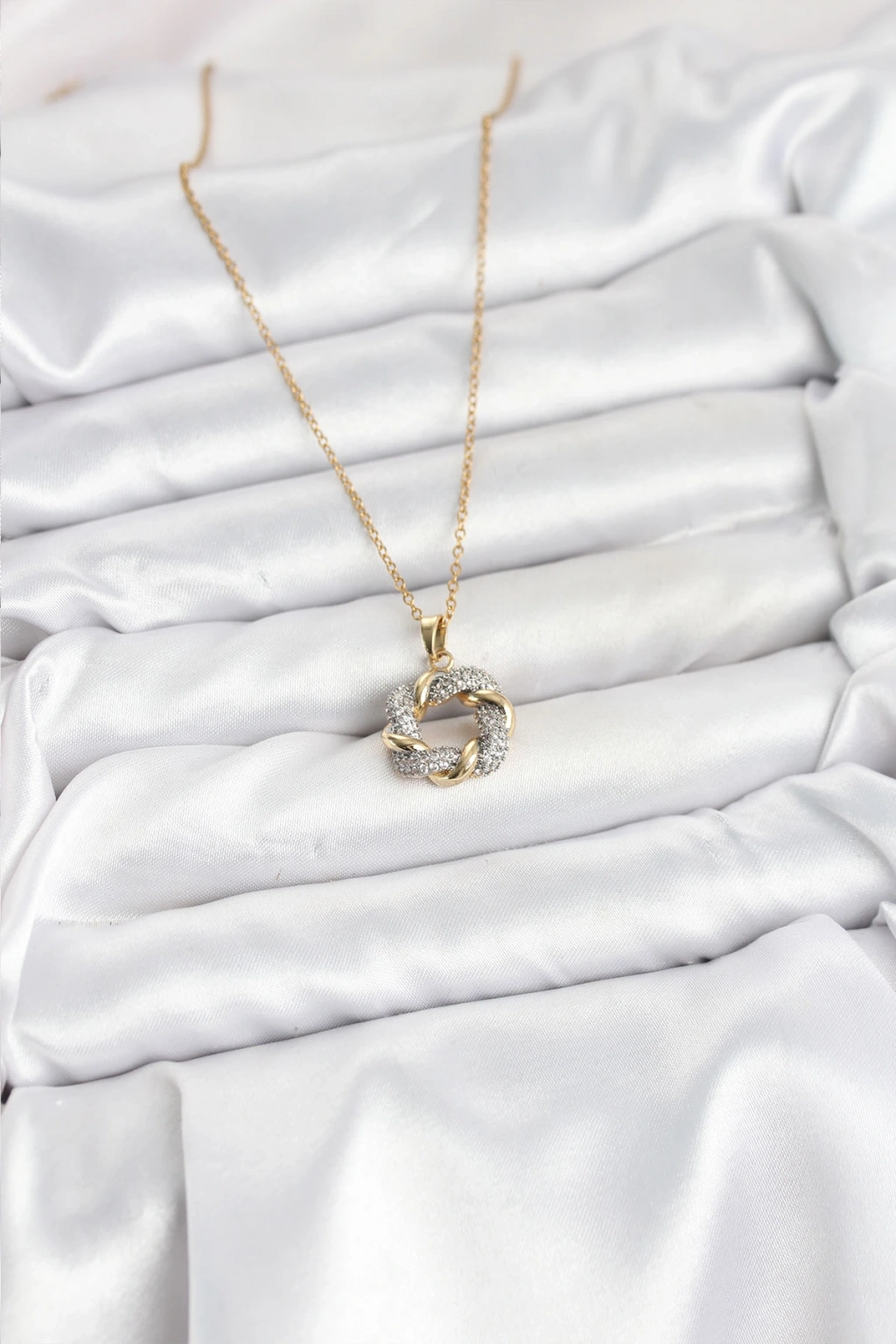 Erb 316L Çelik Zincir Gold Renk Zirkon Taşlı Sarmal Model Kadın Kolye