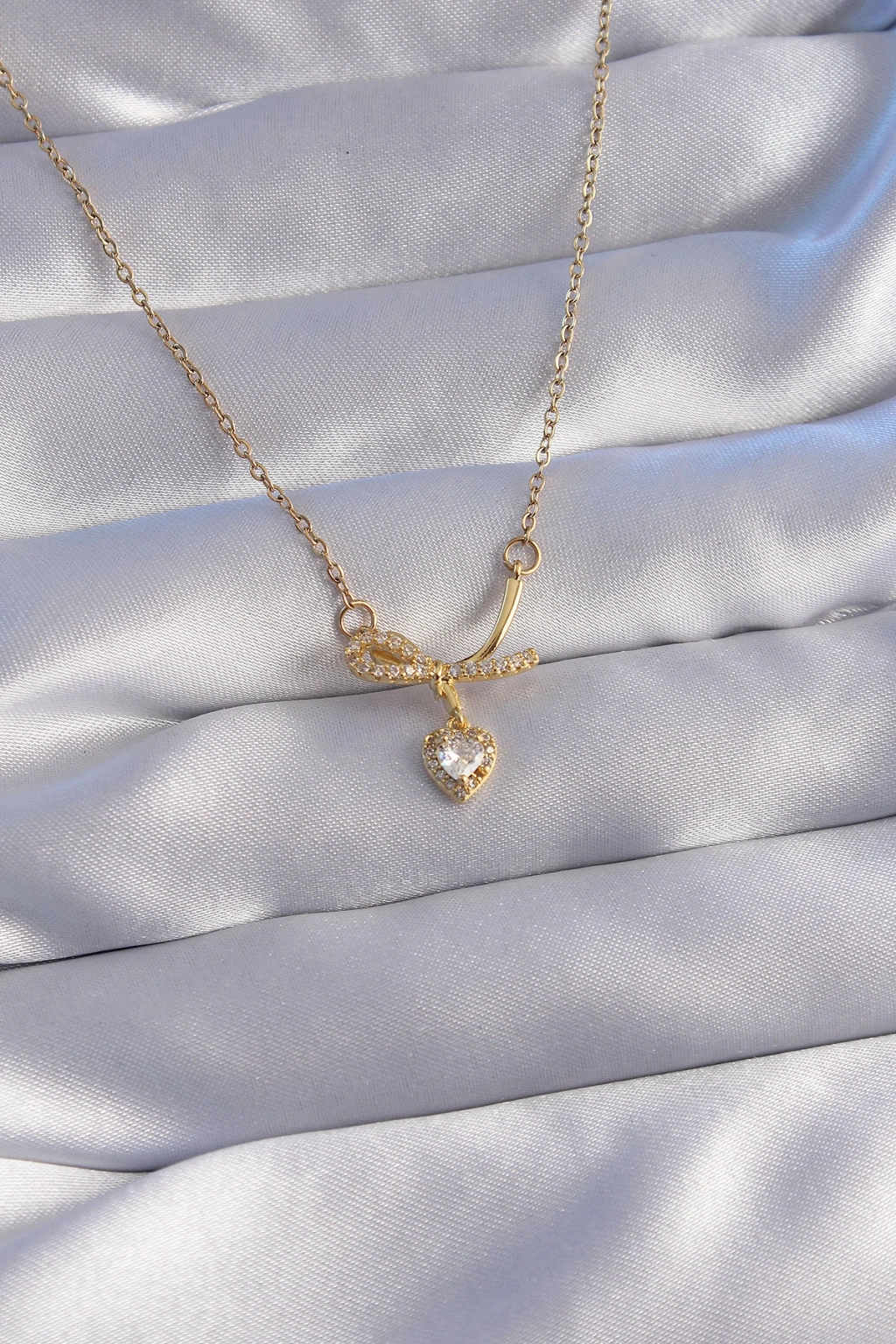 Erb 316L Çelik Zincir Gold Renk Zirkon Taşlı Yarım Fiyonk Kalp Kolye