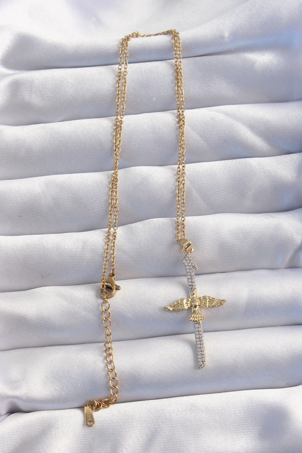 Erb 316L Çelik Zincir Gold Renkli Zirkon Taşlı Anka Kuşu Kolye