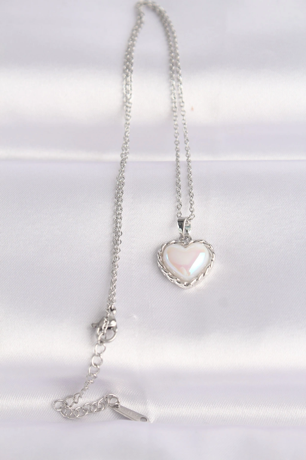 Erb 316L Çelik Zincir Gümüş Renk Beyaz Taşlı Bombeli Kalp Kolye