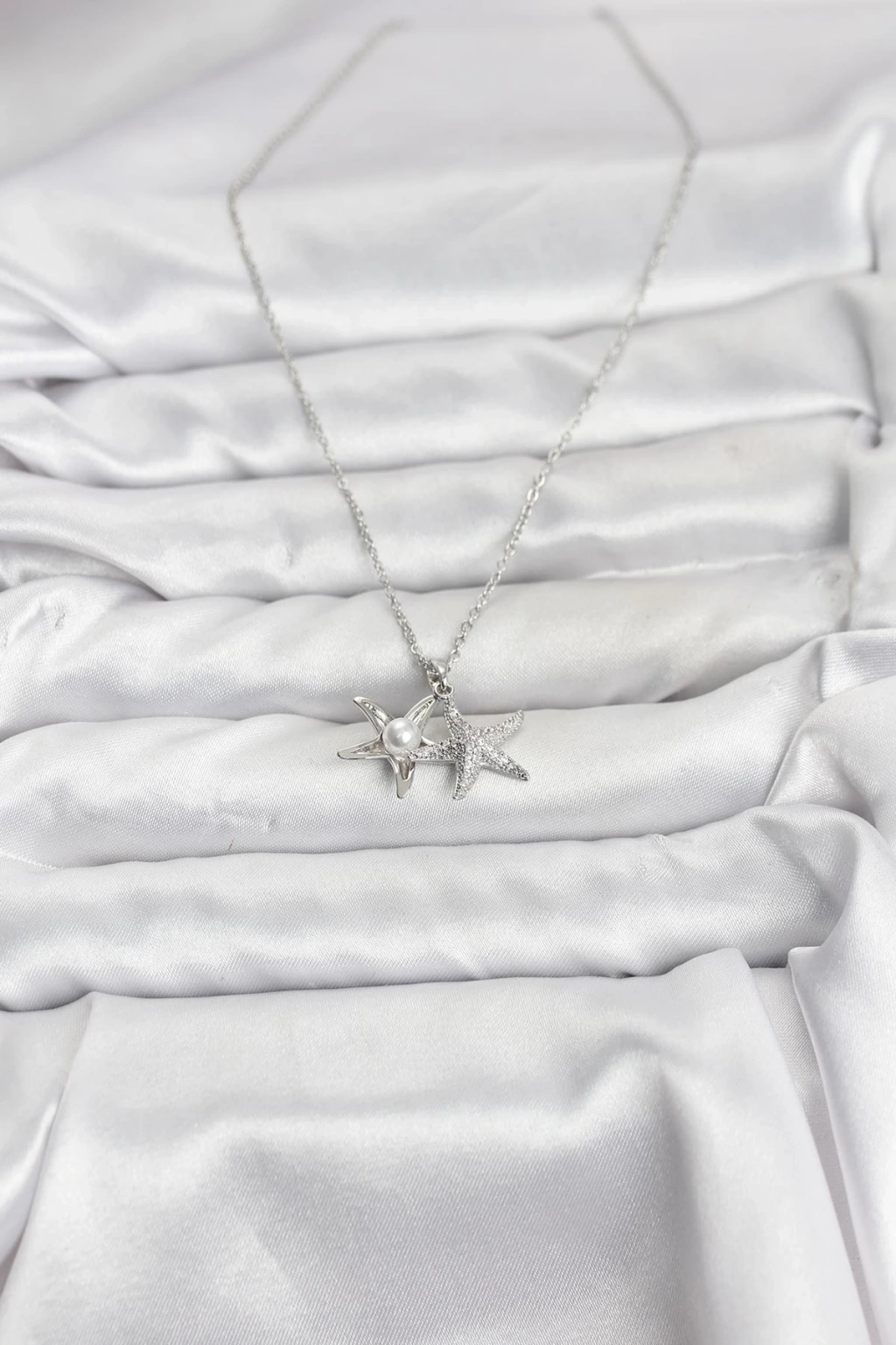 Erb 316L Çelik Zincir Gümüş Renk Deniz Yıldızı Model Zirkon Taşlı Kadın Kolye