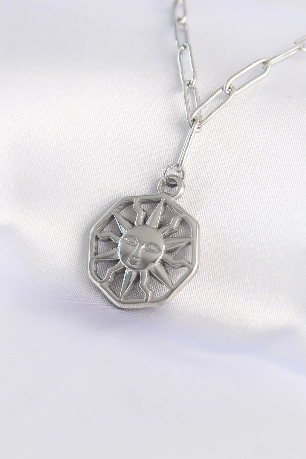 Erb 316L Çelik Zincir Gümüş Renk Güneş Kolye