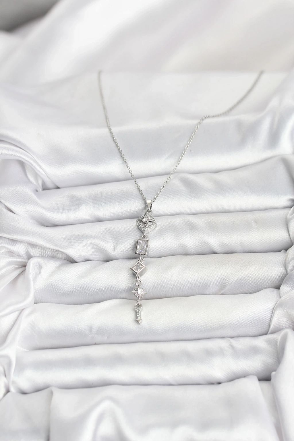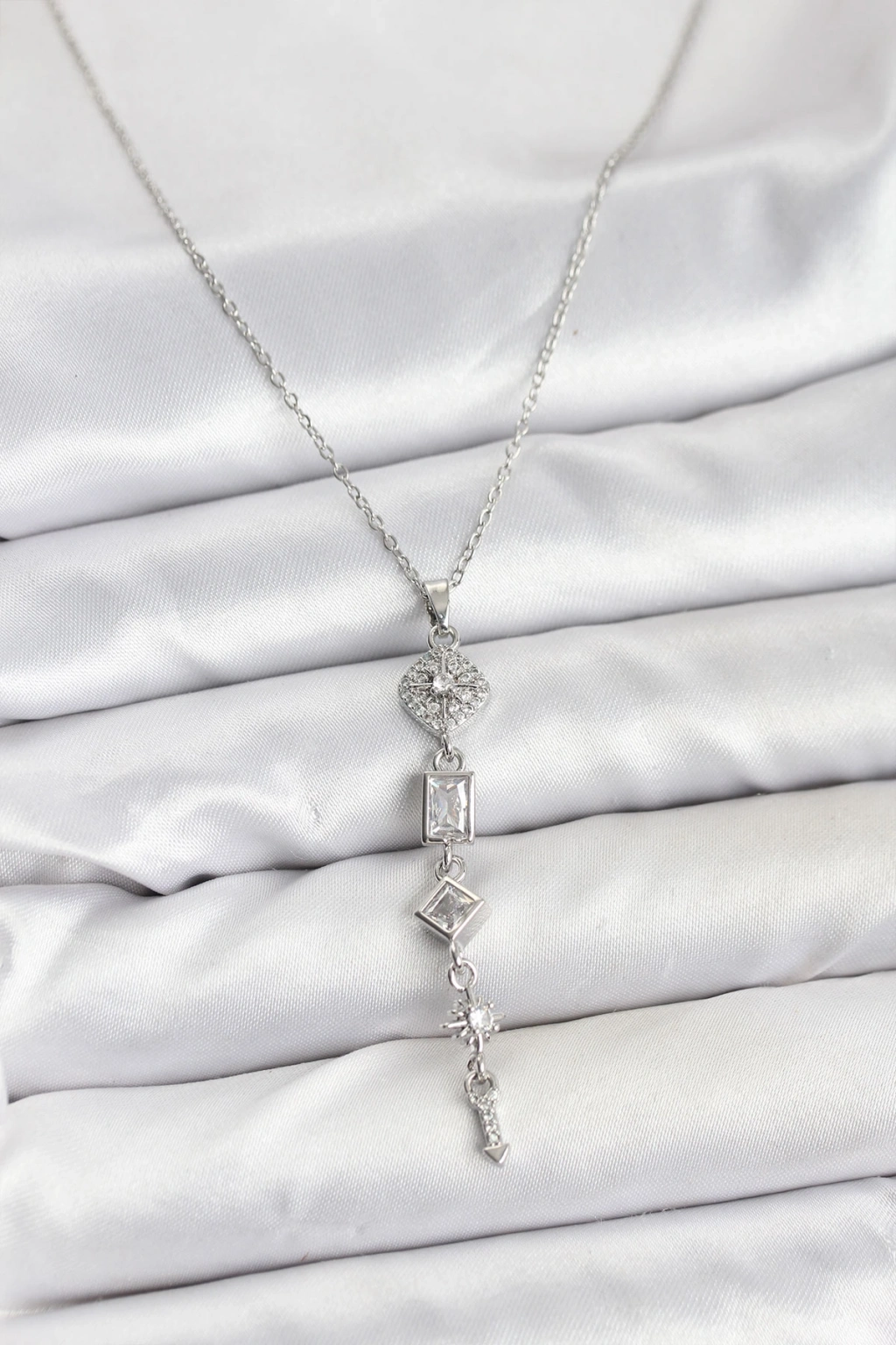 Erb 316L Çelik Zincir Gümüş Renk Kutup Yıldızı Enerji Model Kadın Y Kolye