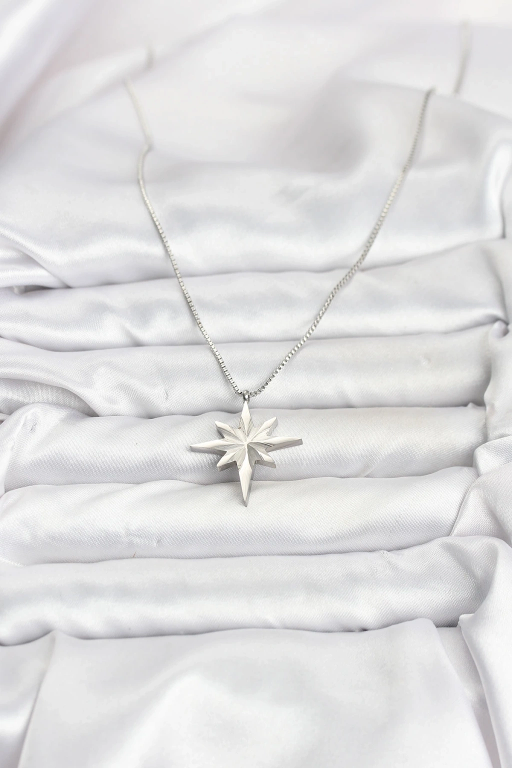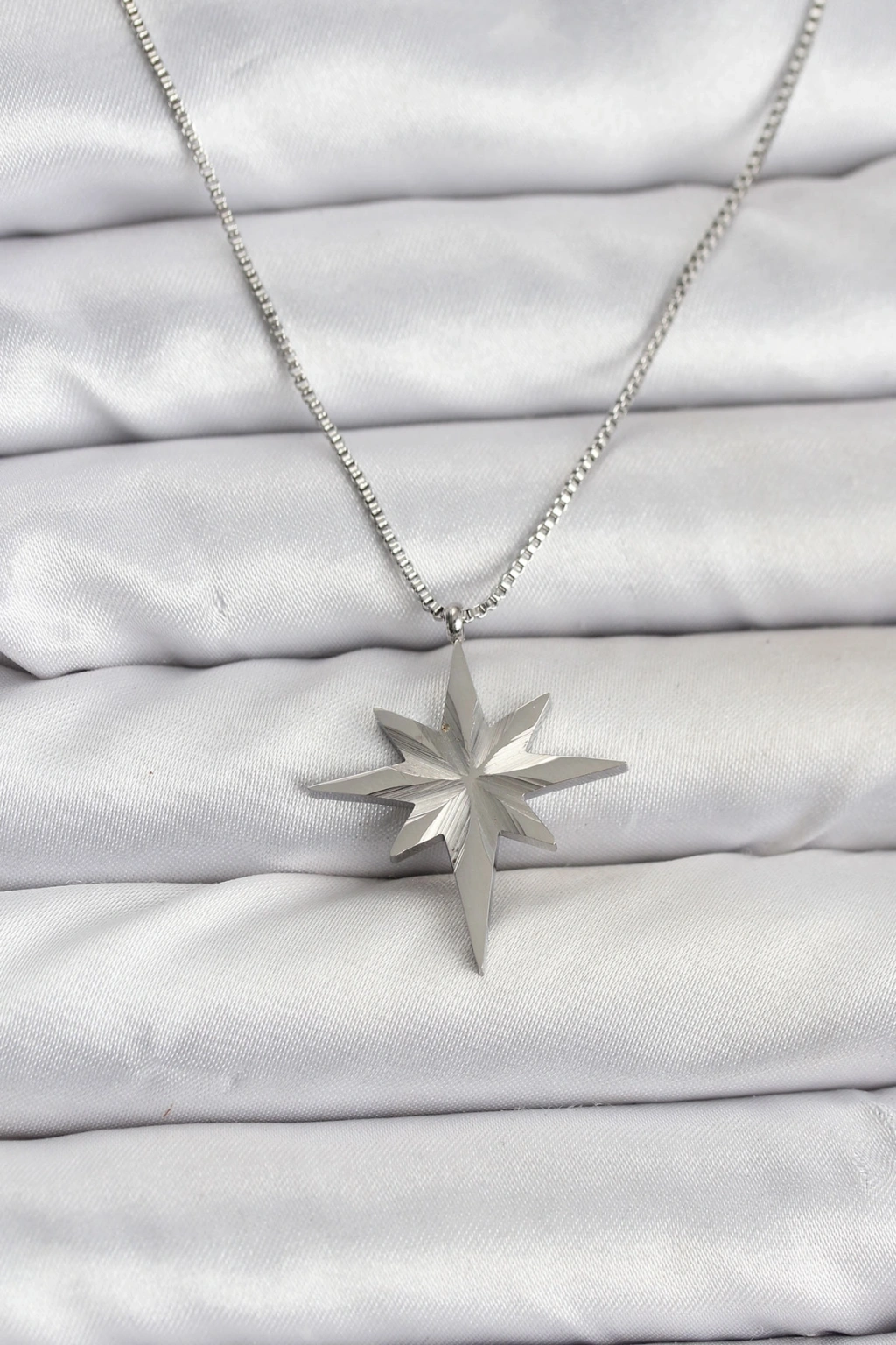 Erb 316L Çelik Zincir Gümüş Renk Kutup Yıldızı Model 60 Cm Zincir Kadın Kolye