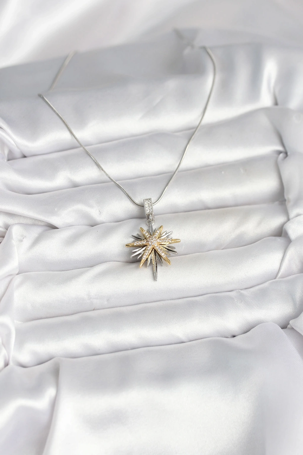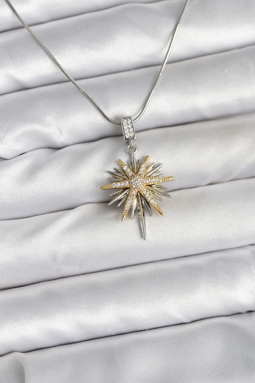 Erb 316L Çelik Zincir Gümüş Renk Kutup Yıldızı Model Kadın Kolye