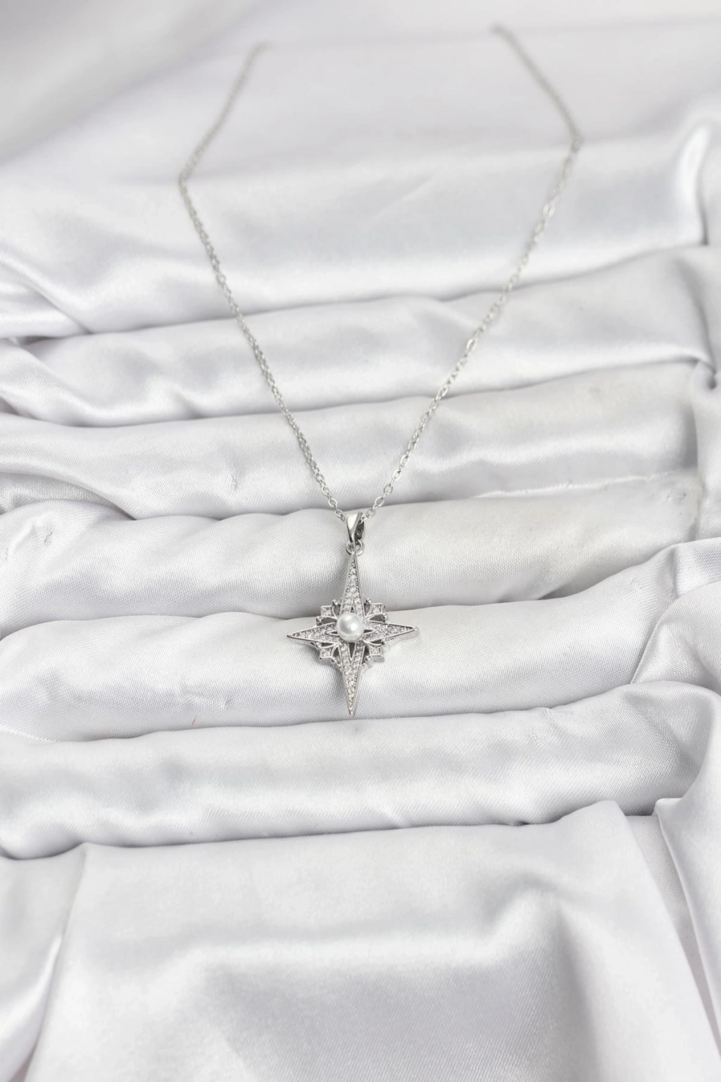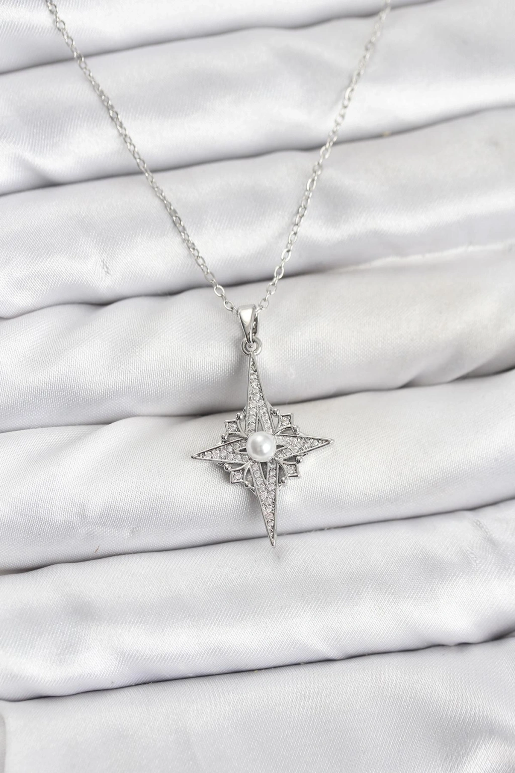 Erb 316L Çelik Zincir Gümüş Renk Kutup Yıldızı Model Zirkon Taşlı Kadın Kolye