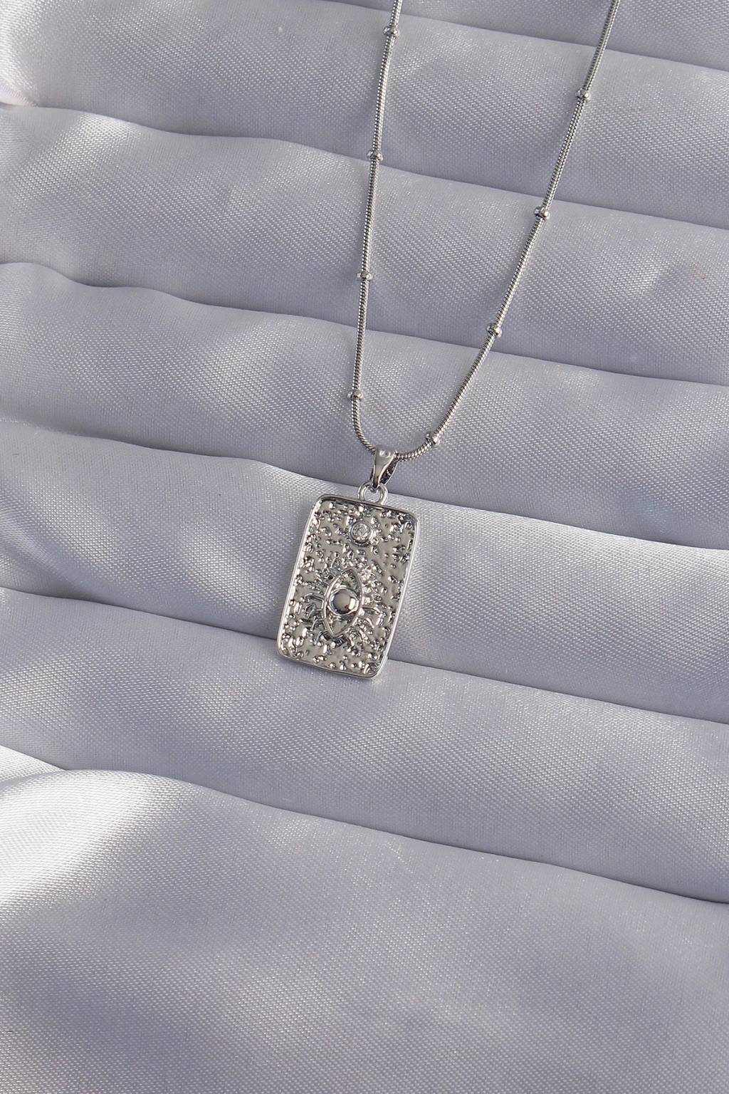 Erb 316L Çelik Zincir Gümüş Renk Lazer İşlemeli Göz Figür Tarot Kolye