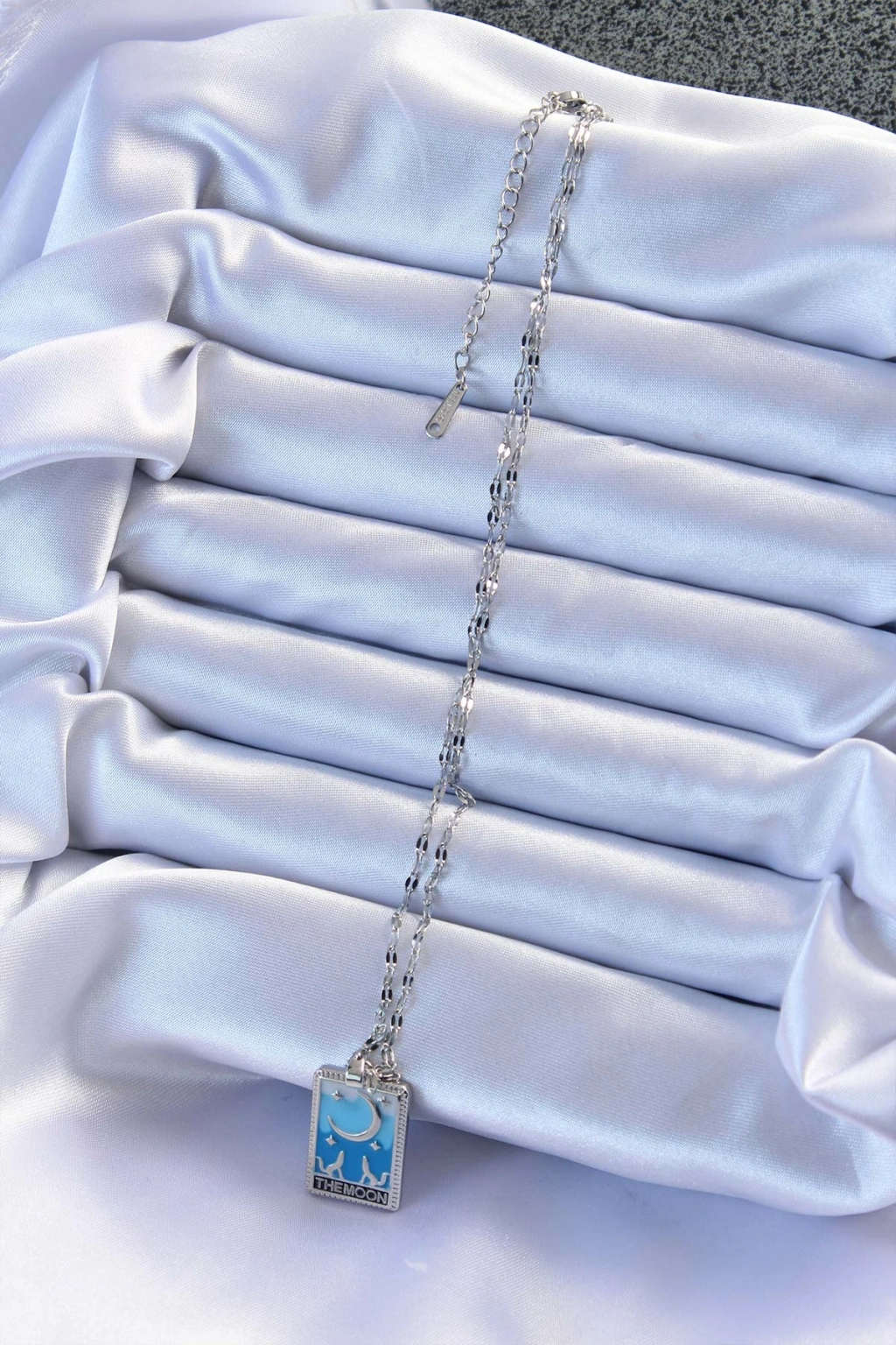 Erb 316L Çelik Zincir Gümüş Renk Mavi Mineli Ay Figür Tarot Kolye