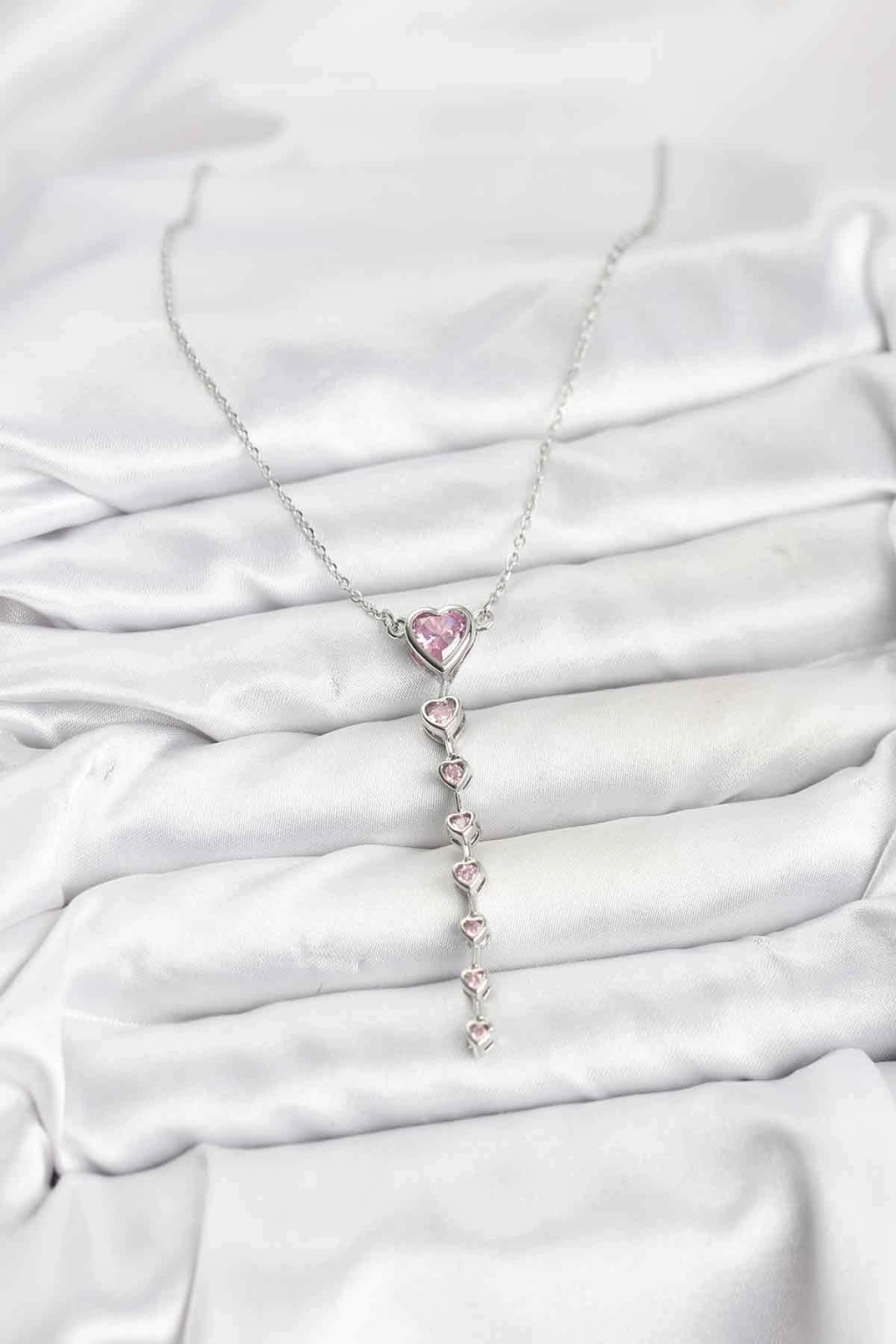 Erb 316L Çelik Zincir Gümüş Renk Pembe Kalp Kadın Kolye