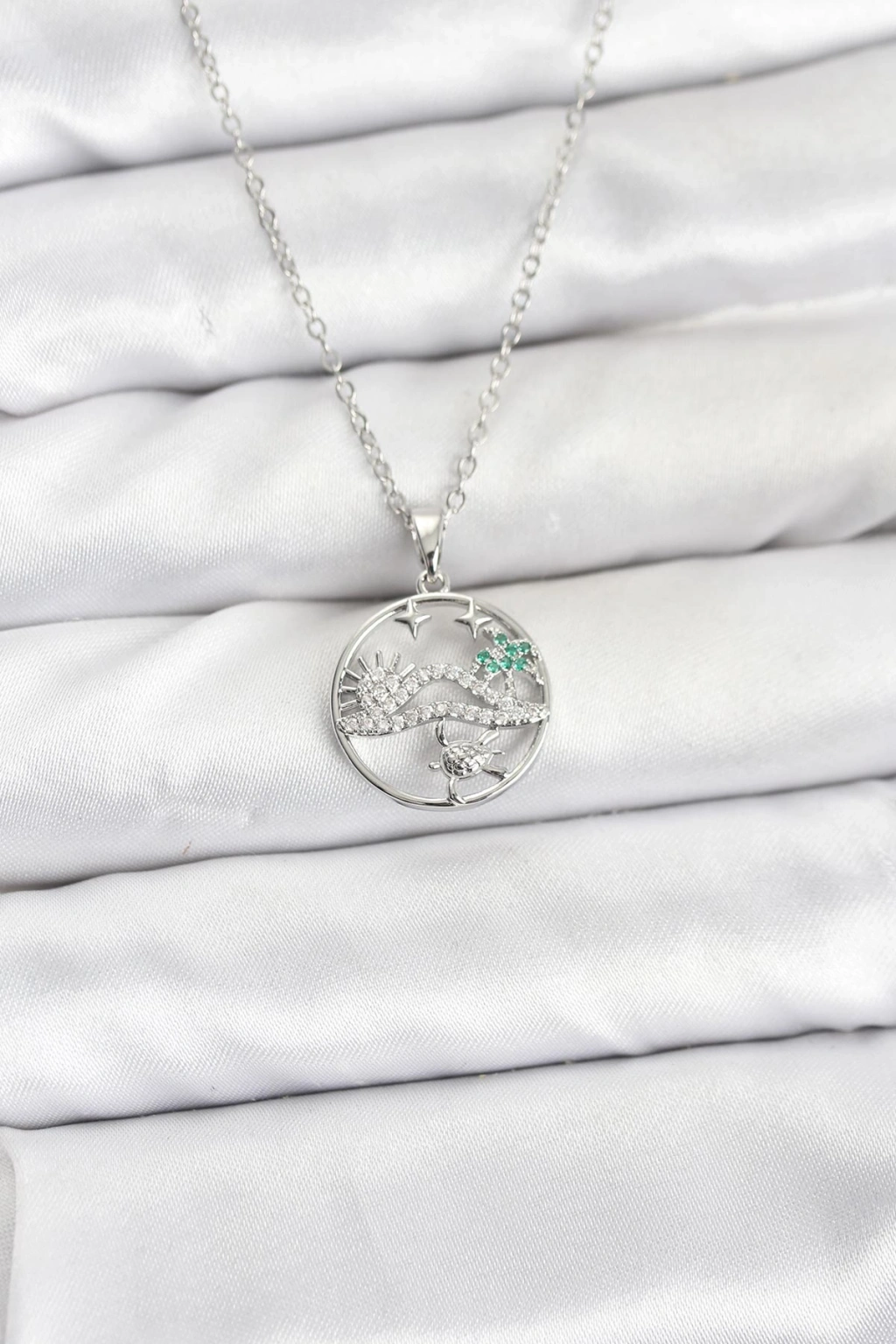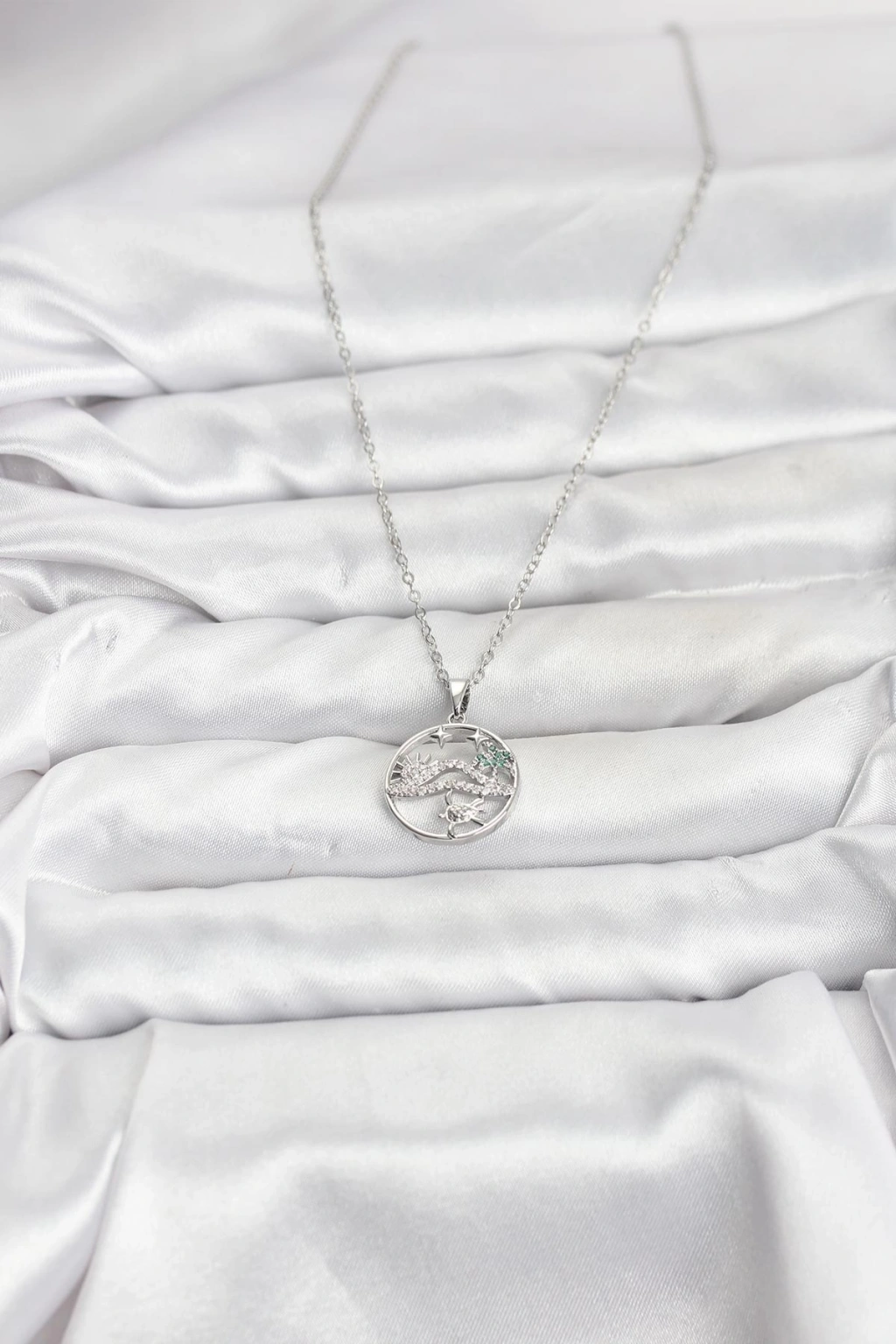 Erb 316L Çelik Zincir Gümüş Renk Şans Kolyesi Model Zirkon Taşlı Kadın Kolye