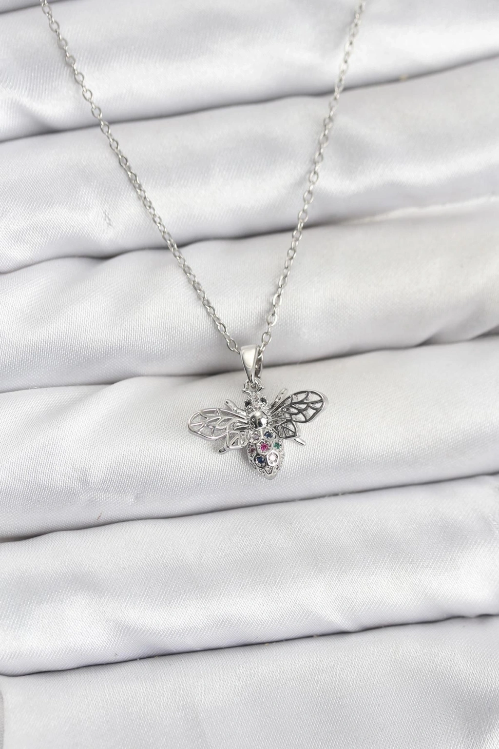 Erb 316L Çelik Zincir Gümüş Renk Sinek Model Zirkon Taşlı Kadın Kolye