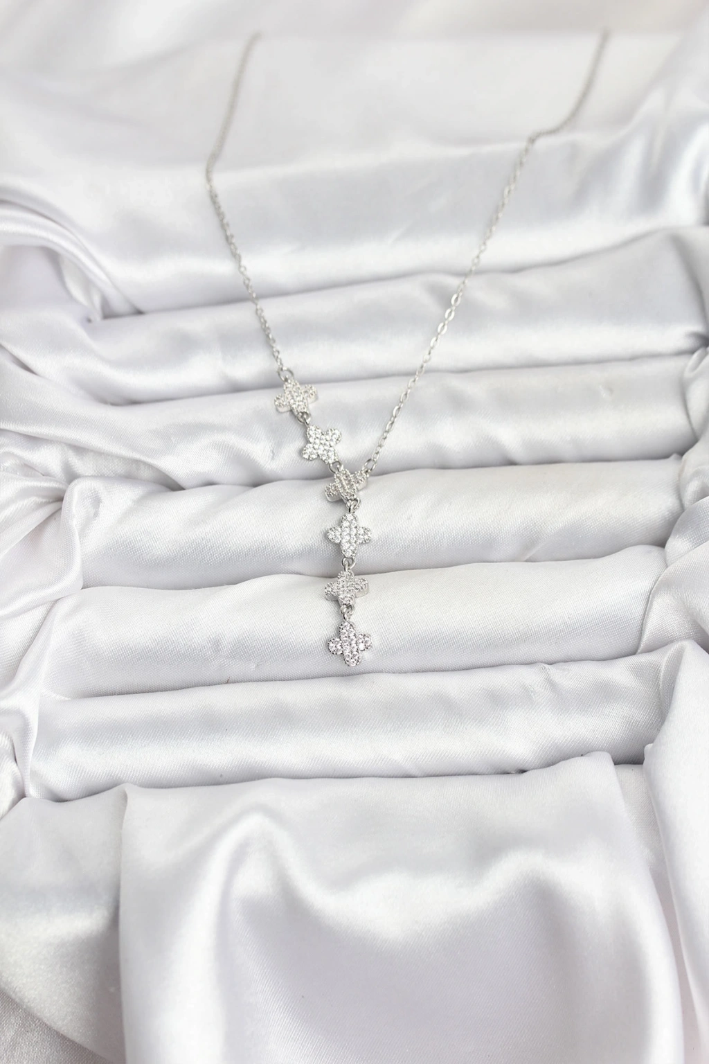 Erb 316L Çelik Zincir Gümüş Renk Yonca Model Kadın Kolye