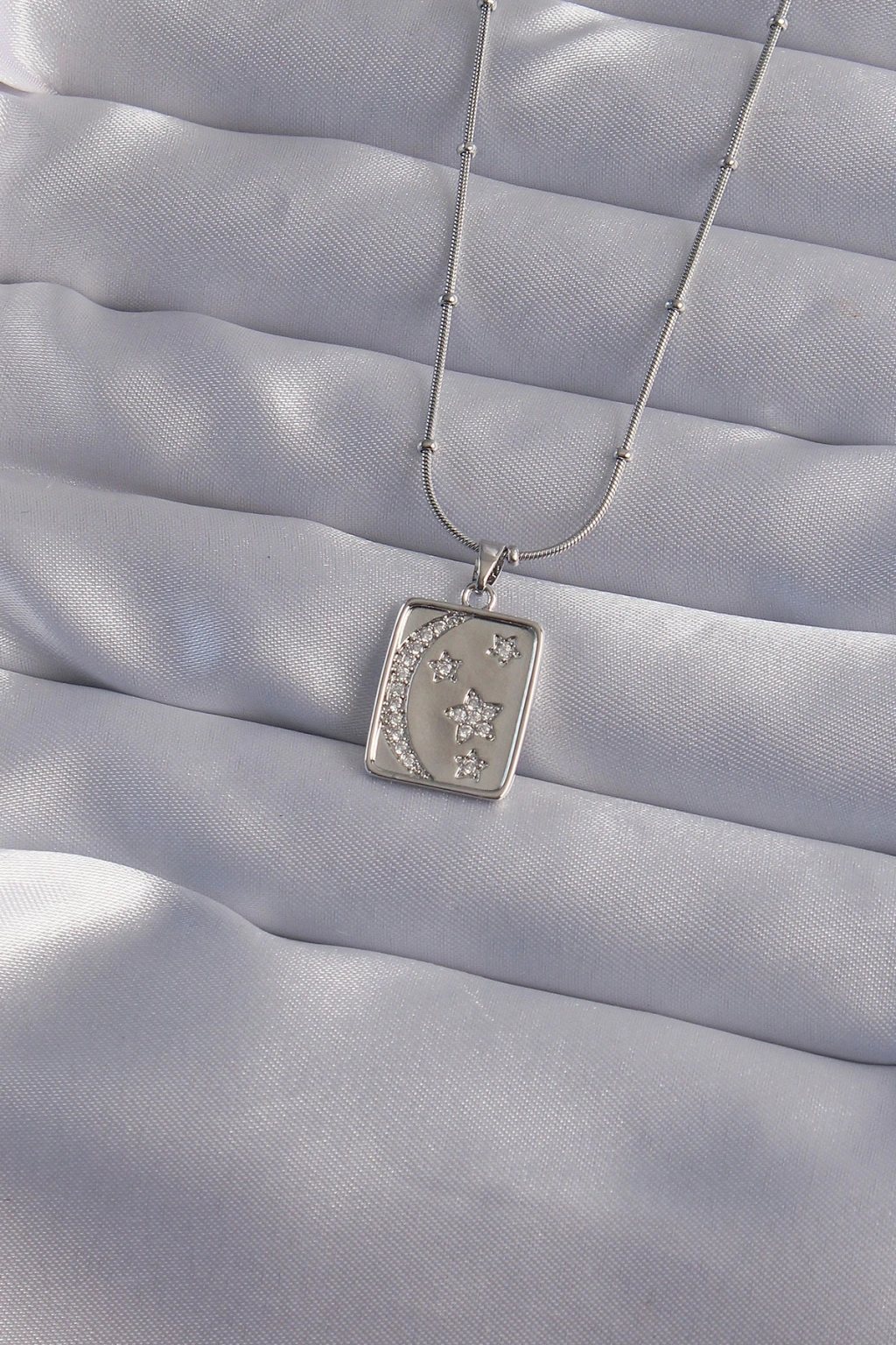 Erb 316L Çelik Zincir Gümüş Renk Zirkon Taşlı Ay Yıldız Figürlü Tarot Kolye