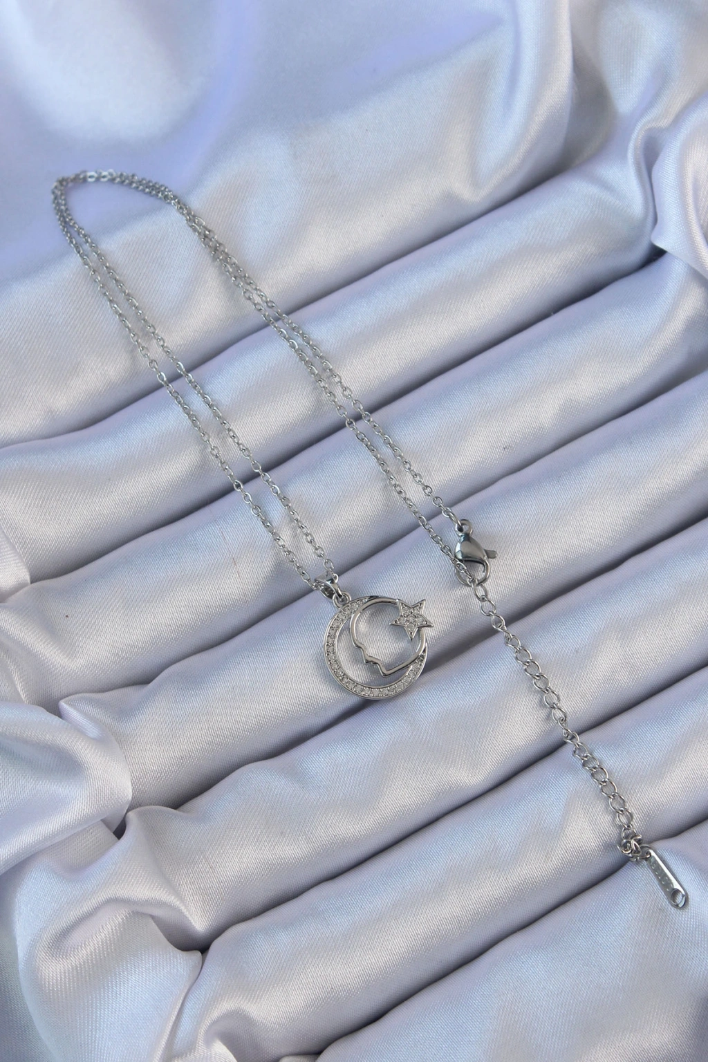 Erb 316L Çelik Zincir Gümüş Renk Zirkon Taşlı Ay Yıldız Simgeli Atatürk Kolye