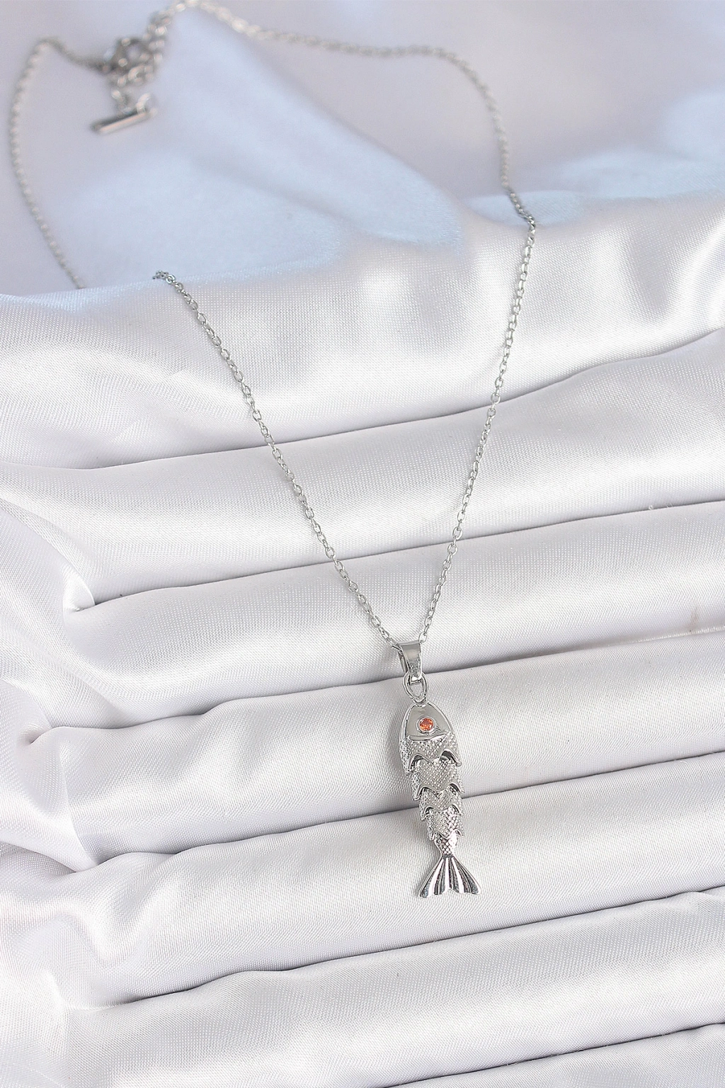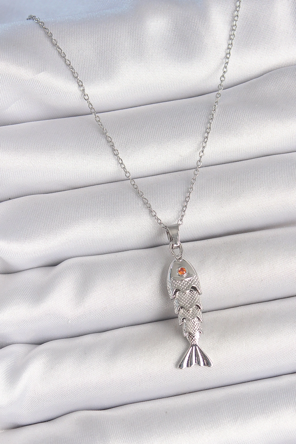 Erb 316L Çelik Zincir Gümüş Renk Zirkon Taşlı Balık Figürlü Kolye