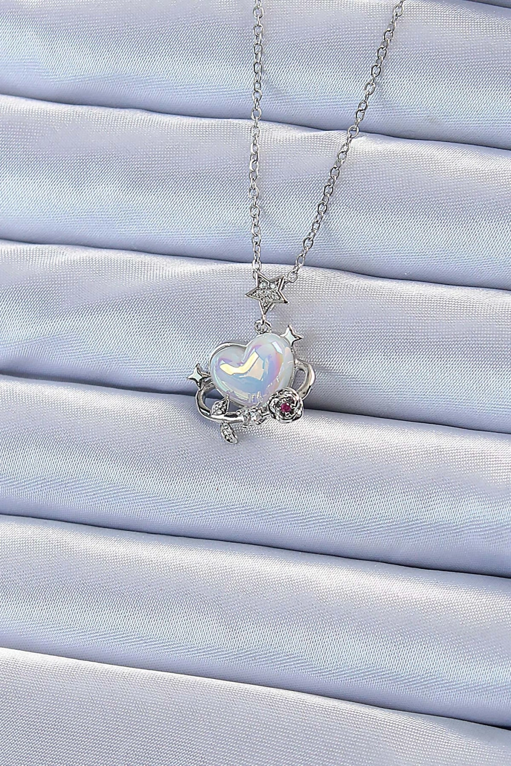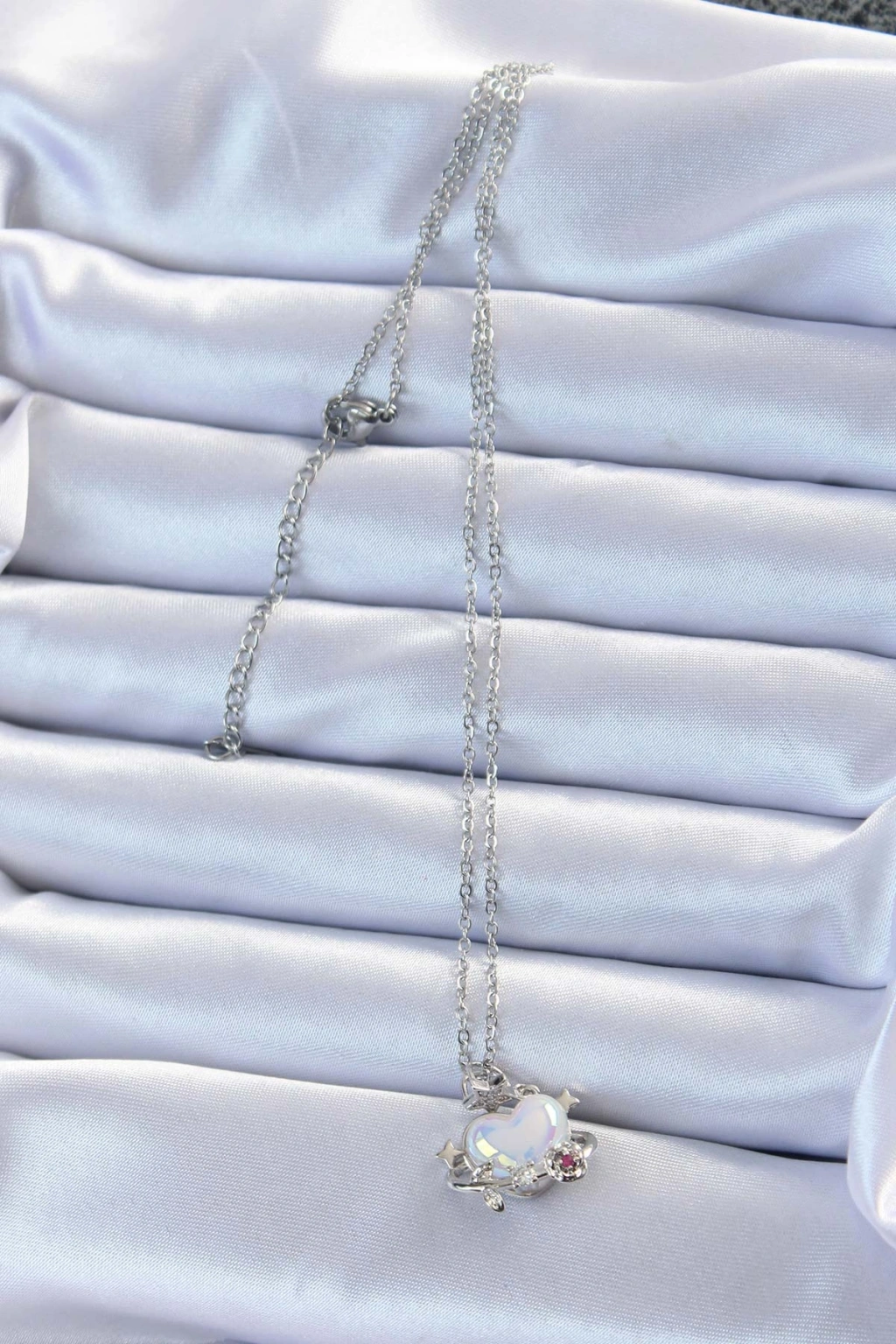 Erb 316L Çelik Zincir Gümüş Renk Zirkon Taşlı Gezegen Görünümlü Kalp Kolye
